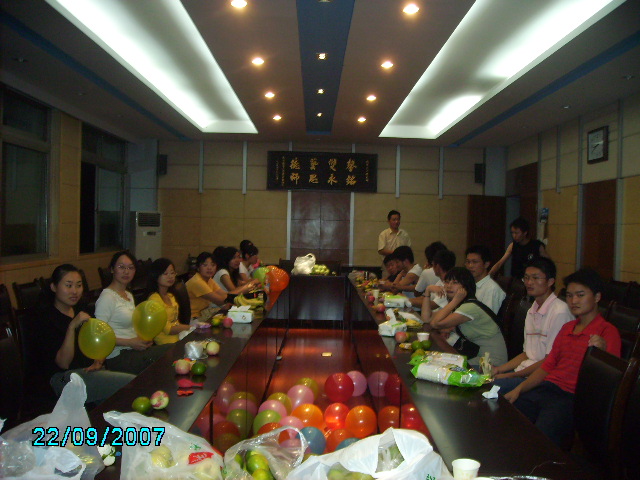 2007年9月24日晚8点半,研2007数学班相聚在数学系会议室兴高采烈地举行了中秋晚会。