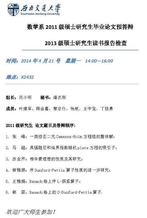 数学系2011级硕士研究生毕业论文预答辩