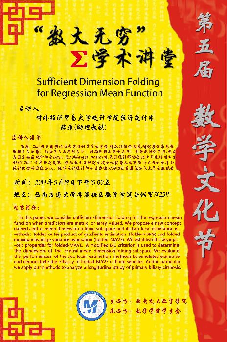 讲座题目: Sufficient Dimension Folding for Regression Mean Function