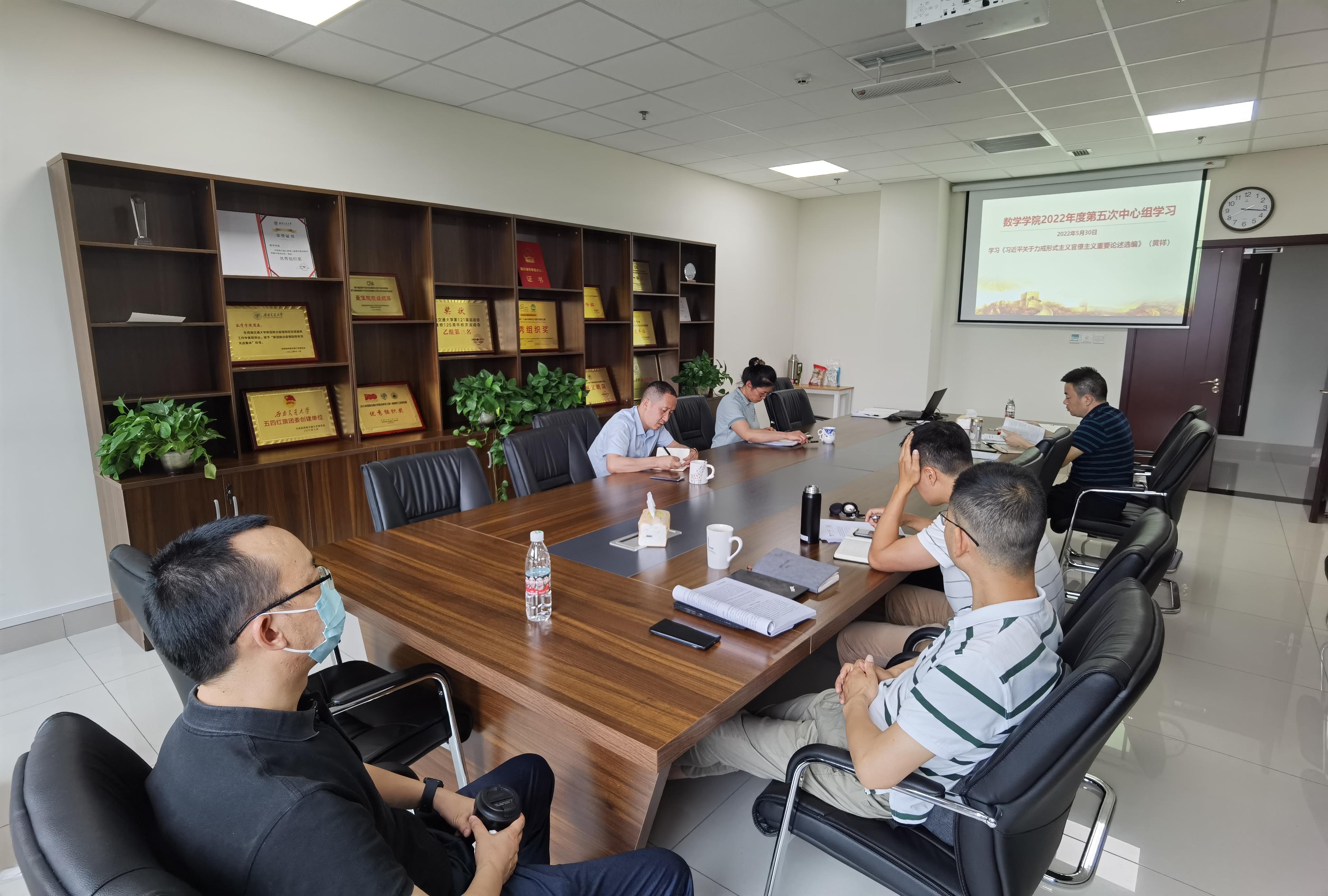 2022年第五次党委中心组集体学习会议于2022年5月30日下午15:00-15:30在犀浦校区X30429会议室召开。会议由学院党委书记徐革主持,内容是学习习近平关于力戒形式主义官僚主义重要论述和学习评论员文章《晒一晒“象牙塔”里的那些官僚主义》。学院党政领导班子成员、党委委员等参加了学习。黄祥副书记领学。