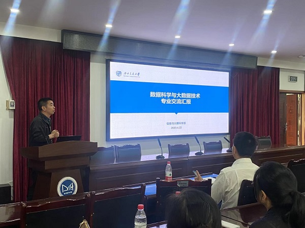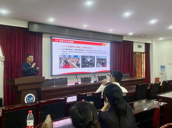 教工信息与计算科学系党支部书记何星星老师和教工统计系党支部书记乔高秀老师分别分享了党建工作经验与专业建设情况等,也邀请各学校的老师们能够到交大来交流合作。