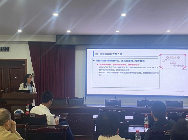 随后,四川师范大学数学科学学院教工第二党支部书记唐孝分享了党建与业务深度融合的“两标两线一服务”支部工作法。唐老师给与会老师们介绍了如何将党建工作和一流课程建设、教材建设、师资队伍建设、人才培养等方面进行有机融合,有效服务师生的优秀做法。