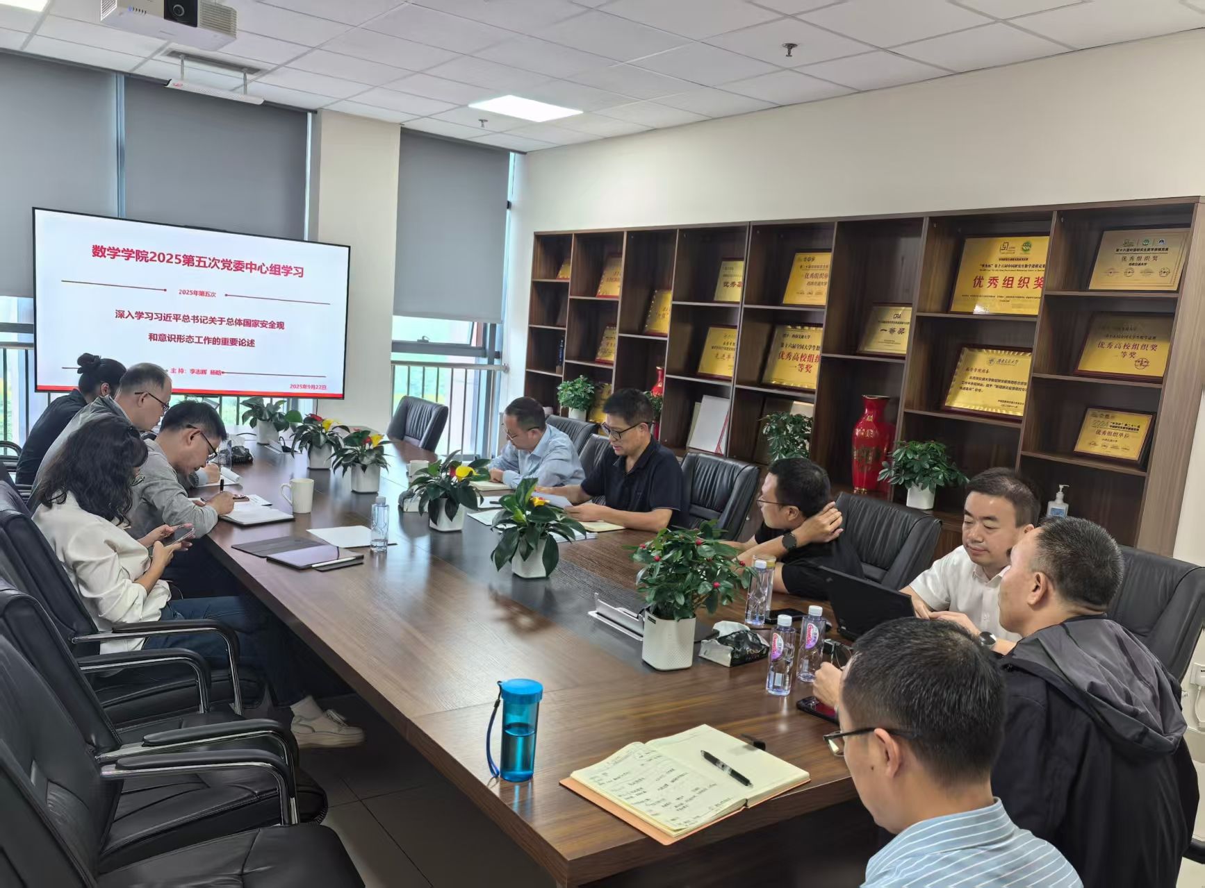 2025年9月22日下午16:30-17:30,网飞猫 2025年第五次党委中心组集体学习会议在犀浦校区X30429会议室召开。会议由学院党委书记李志辉主持并领学,内容是深入学习习近平总书记关于总体国家安全观和意识形态工作的重要论述。学院党政领导班子成员、党委委员等参加了学习。
