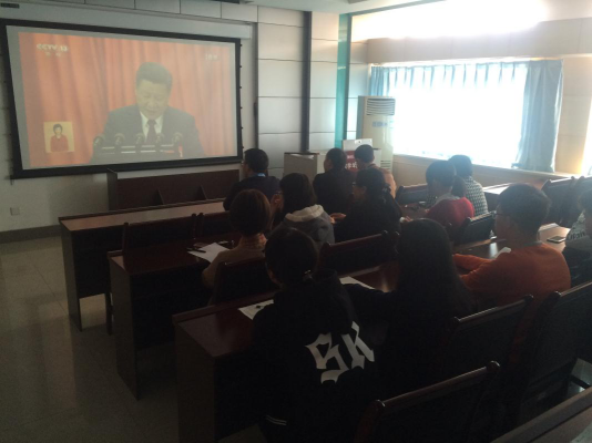 大会报告32440余字,历时210分钟,学院师生认真收看,详细记录,认真学习。会后,党委委员,学生工作组组长杨育鸿同志组织辅导员老师,学生党员代表进行座谈交流,学习报告要点,领会报告精神。