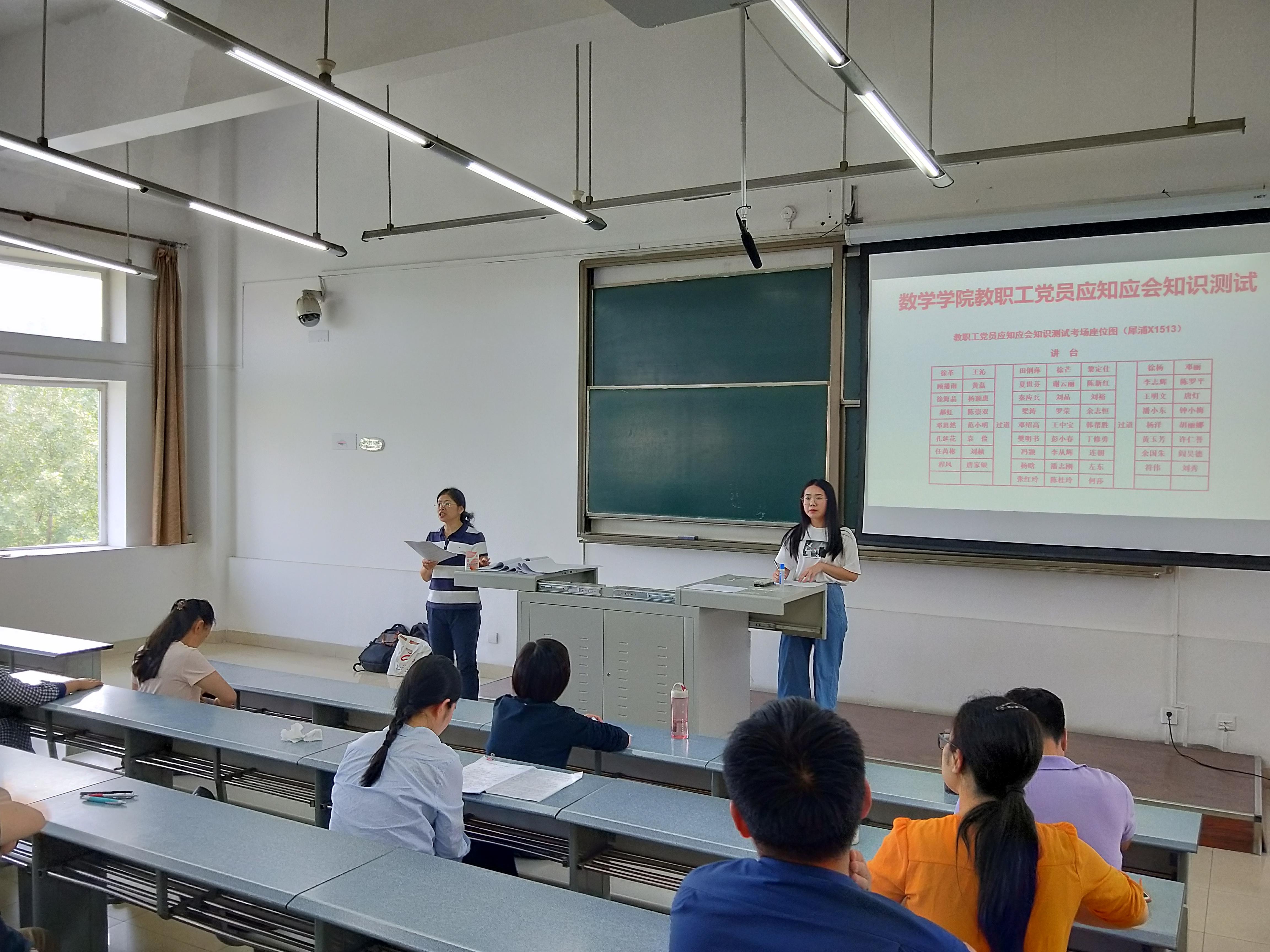 党委于 2019年5月23日下午4:00-5:30,组织教工党员在X1513教室和峨眉E1435同步进行党员应知应会知识闭卷测试。