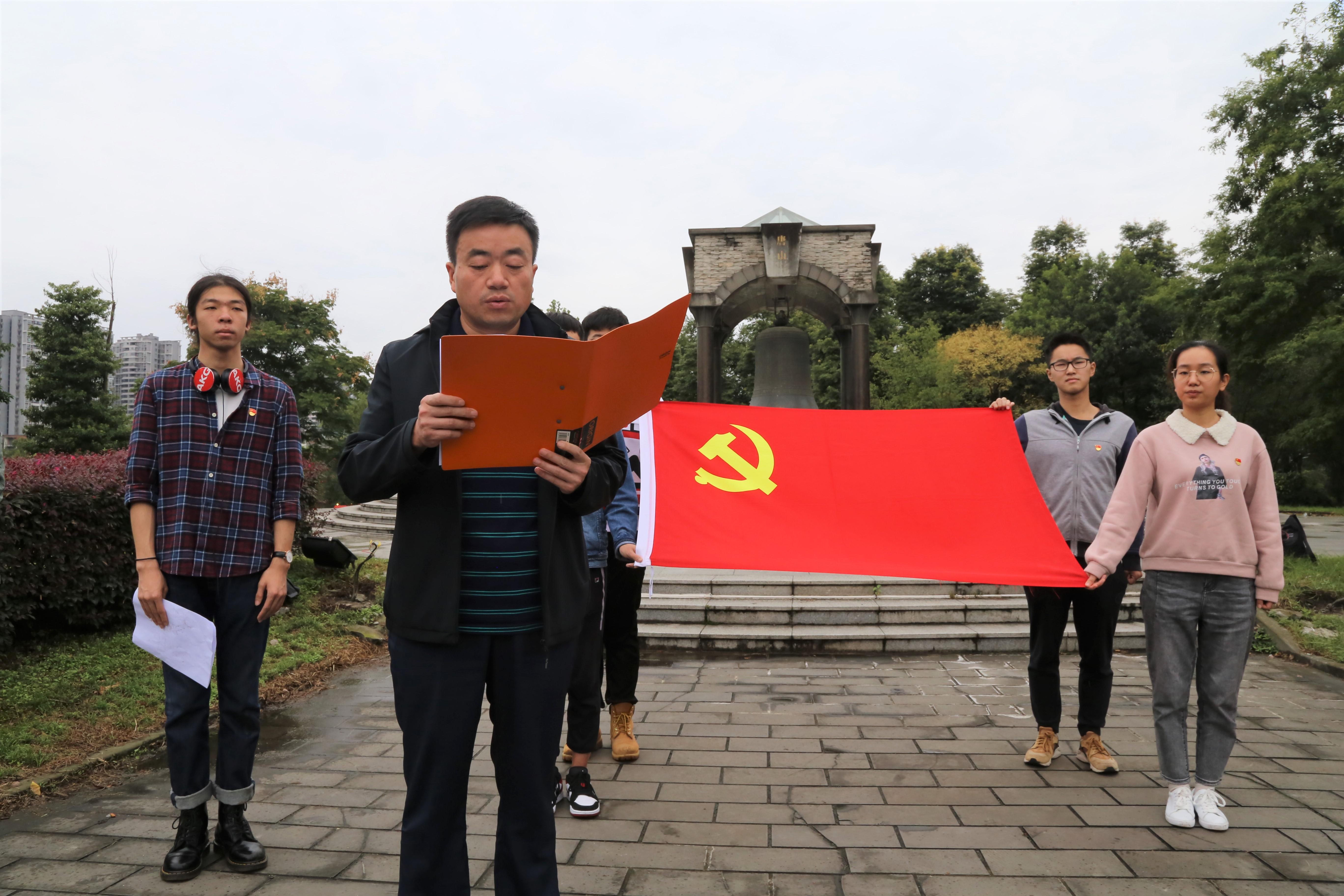 入党宣誓活动在钟亭举行。学院党委副书记黄祥、综合办公室主任兼党务秘书任鹏、专职组织员徐海晶,以及各支部党员参加了此次活动。