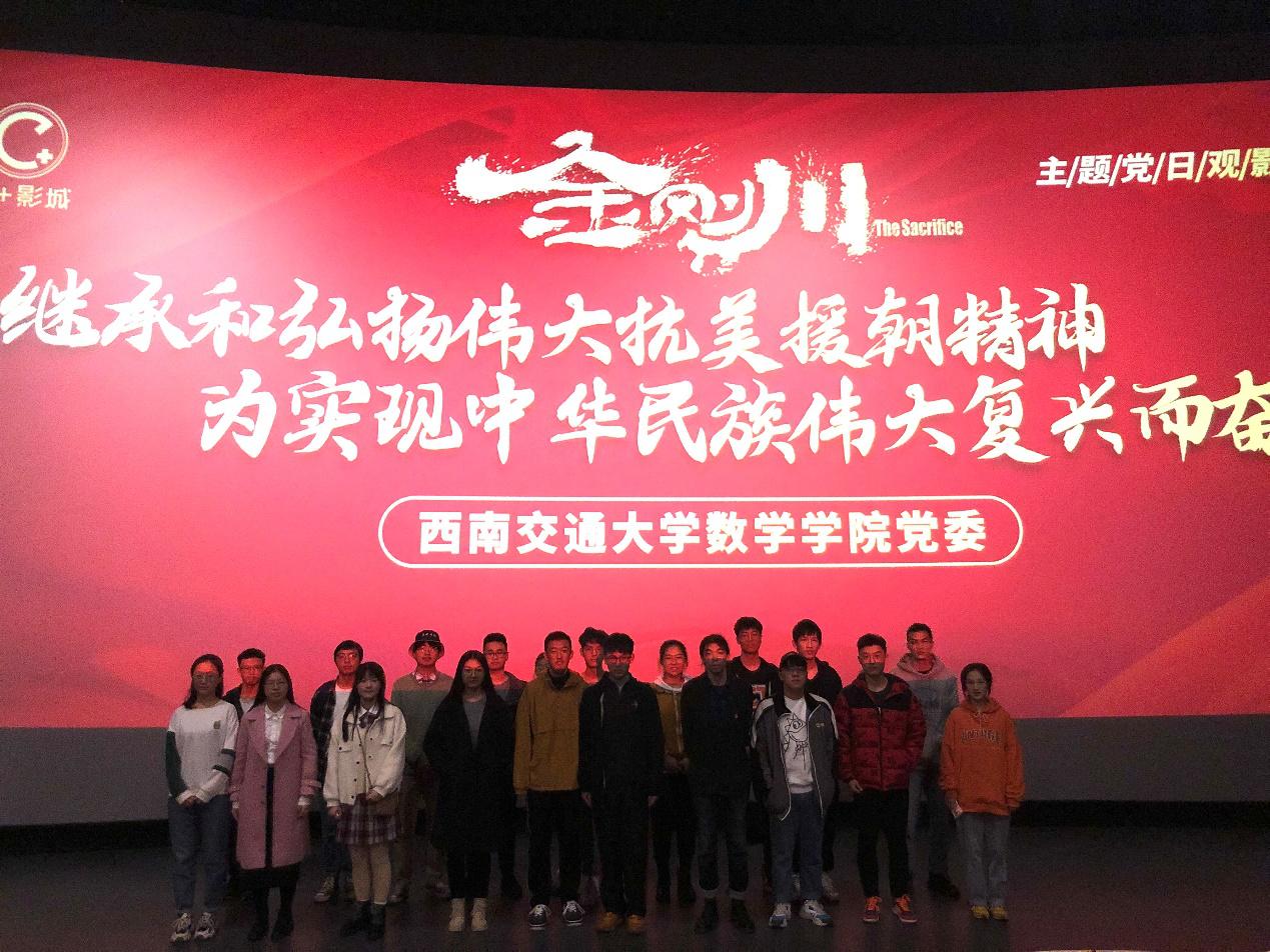 各党支部于C+影城组织党员、积极分子、发展对象等同学观看《金刚川》,举行“伟大抗美援朝精神,为实现中华民族伟大复兴而奋斗”主题党日活动。此次主题党日活动由本科党支部书记胡皓量同志主持,观影结束后,支部党员同志谈心得、聊体会、说打算。此次活动不仅丰富了支部党员生活,也使支部学生党员接受了一次深刻的爱国主义精神洗礼。