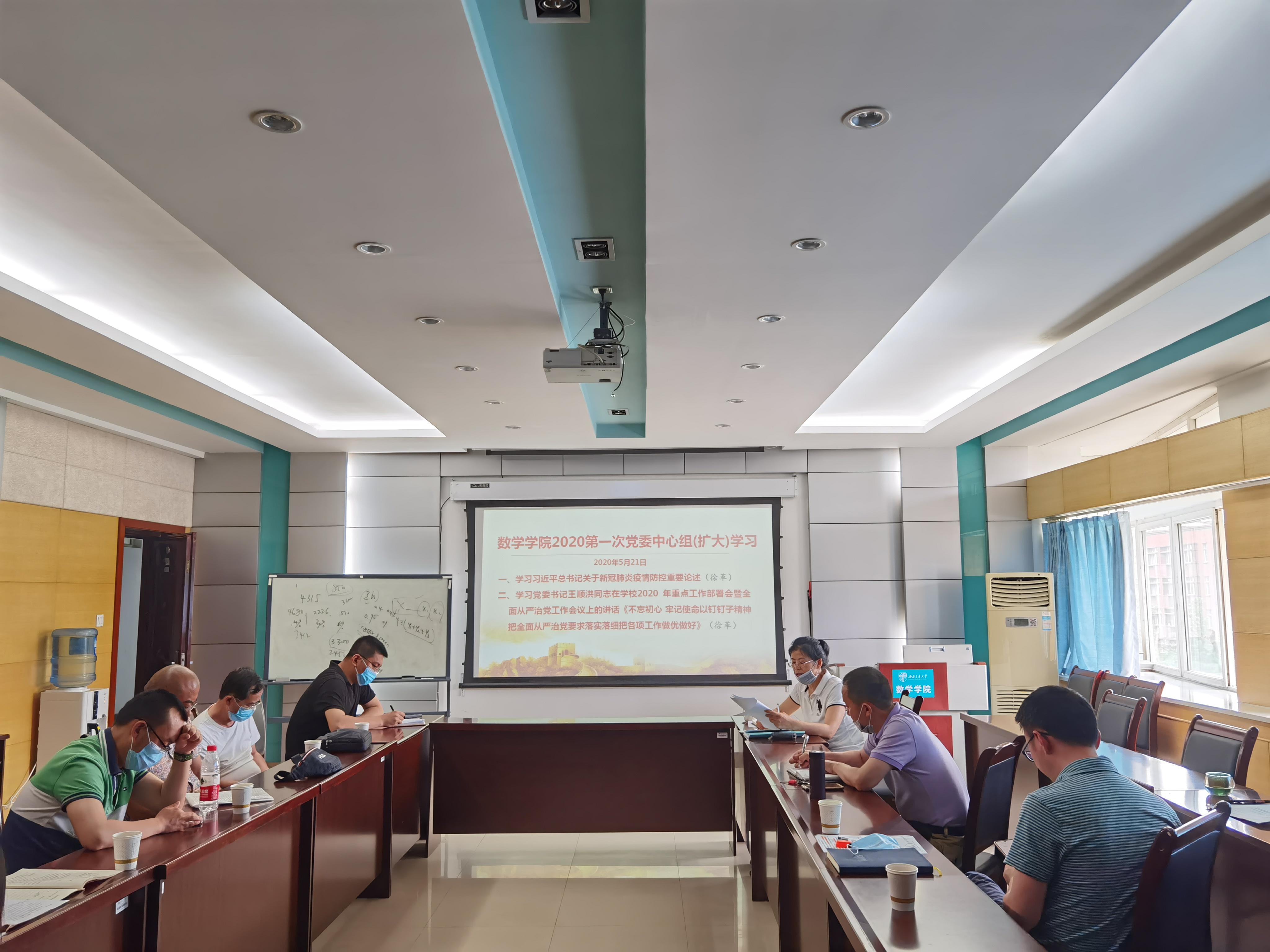 2020年第一次党委中心组(扩大)集体学习会议在犀浦校区X2511会议室召开,会议围绕学习习近平总书记关于新冠肺炎疫情防控重要论述和学习党委书记王顺洪同志在学校2020 年重点工作部署会暨全面从严治党工作会议上的讲话《不忘初心 牢记使命以钉钉子精神把全面从严治党要求落实落细把各项工作做优做好》两个专题进行了集体学习。会议由党委书记徐革主持。学院党政领导班子成员、党委委员、教工党支部书记、参加了学习和讨论。