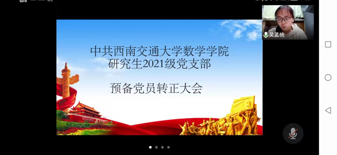 2021级研究生院党支部于线上会议举行了吴孟桃、吴怡两位预备党员转正的党支部会议,本次会议由党支部书记王乐主持。