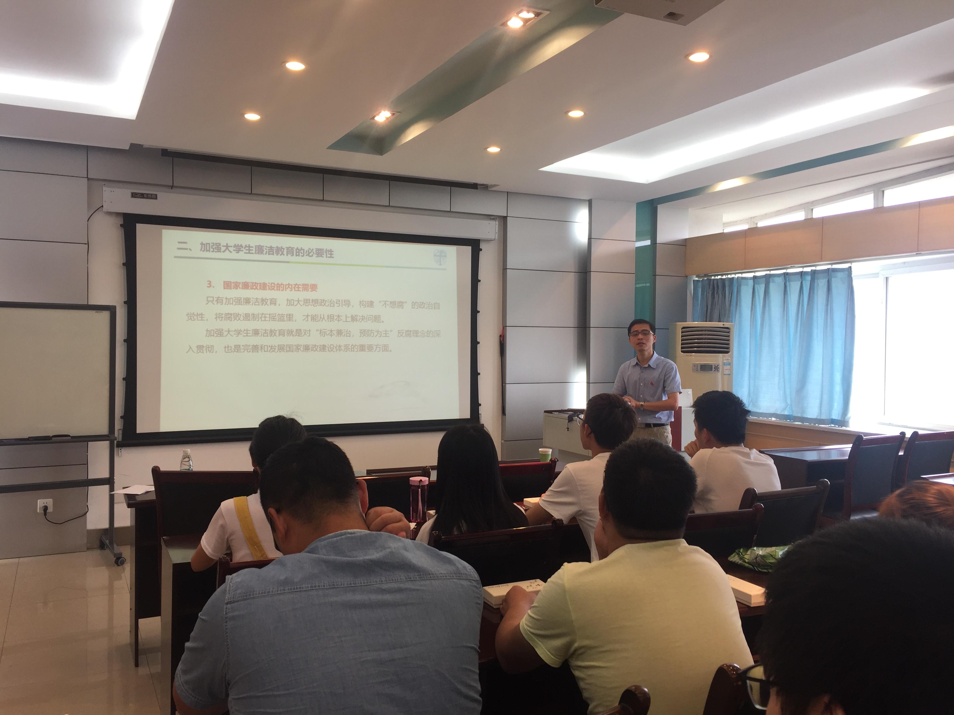6月19日下午16:00,大学最后一课毕业班党员学习廉洁会议在X2511顺利召开,会议由网飞猫 党委副书记兼纪委书记杨育鸿老师主讲,学生党建指导老师卢怡帆老师主持,本研全体毕业生党员参加了此次会议。