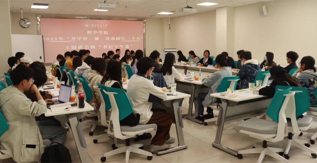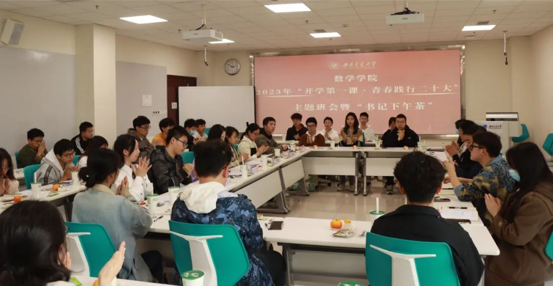 力奋斗,最后收获了成功果实;2021级统计二班的班长赵彦通向大家介绍了班级学风建设的经验和方法;学生会执行主席胡丽君向老师同学们汇报了维护学生权益活动成果;2020级统计一班的朱秀玲提出了自己如今所面临的挑战与困惑;2019级数学二班的尹懿分享了学习心得,鼓励大家勇于拼搏奋斗;2020级博士研究生沈炳声讲述了自己从迷茫到卓有成就的历程。