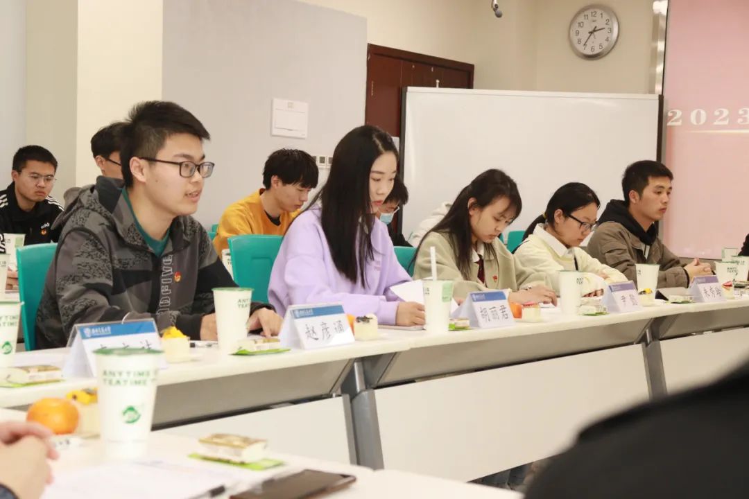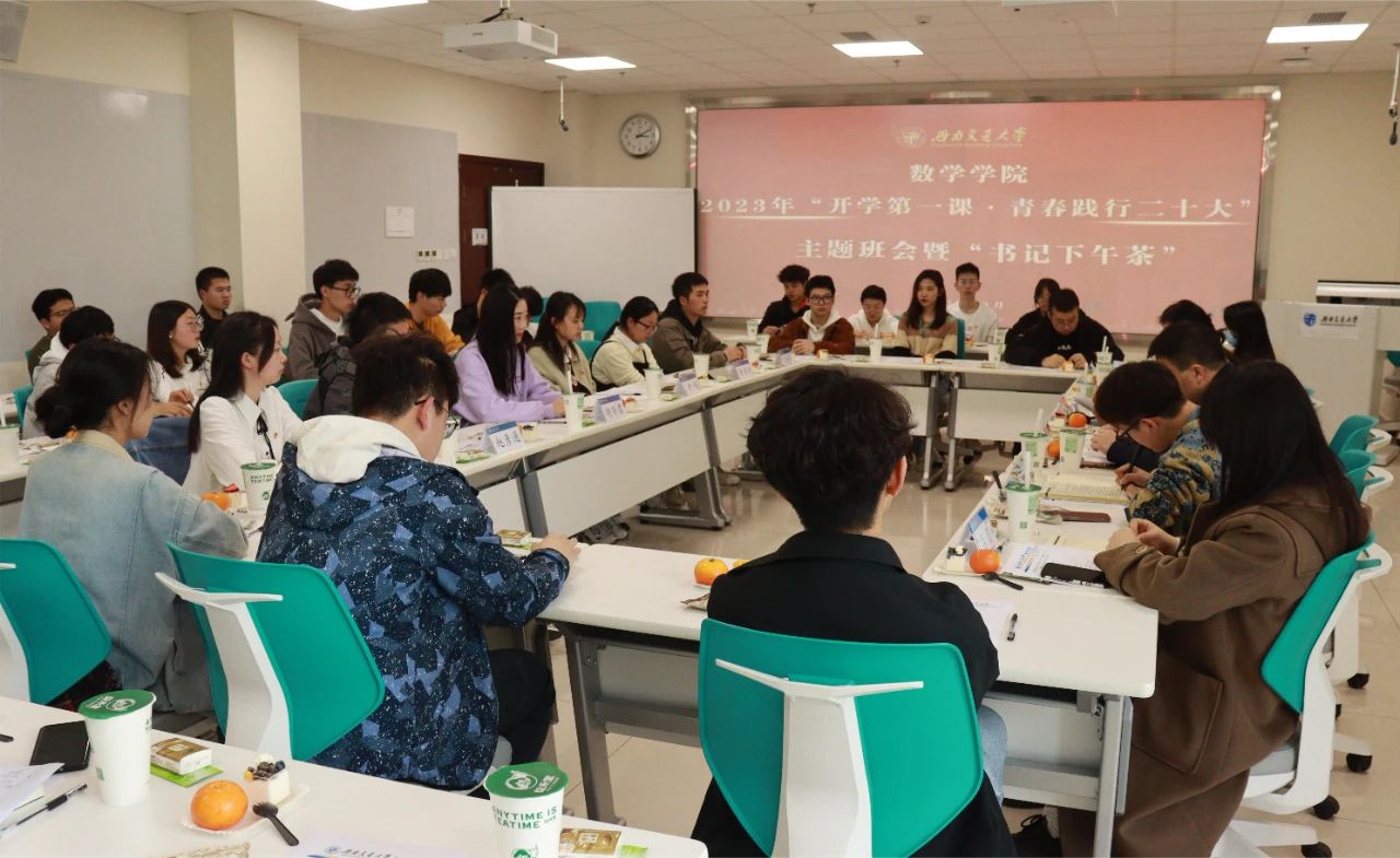 习近平总书记在党的二十大报告中寄语青年“广大青年要坚定不移听党话、跟党走,怀抱梦想又脚踏实地,敢想敢为又善作善成,立志做有理想、敢担当、能吃苦、肯奋斗的新时代好青年,让青春在全面建设社会主义现代化国家的火热实践中绽放绚丽之花。”本次“青春践行党的二十大”主题班会暨“书记下午茶”活动通过优秀学生代表的经验分享,鼓励全体同学积极向上,敢于拼搏,为实现第二个百年奋斗目标作出新的更大贡献。