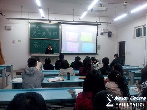 统计本科生第一党支部第一次大会正式开始,指导老师为团委副书记兼11级辅导员张娟老师,参加会议的是第一党支部的党员和入党积极分子。