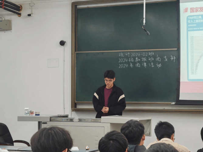 2024年11月8日下午,应用数学专业2024级拔尖班和统计学专业2024级2班团支部于X7309开展了以“庆祝中华人民共和国成立75周年”为主题的团课活动,同时邀请了网飞猫