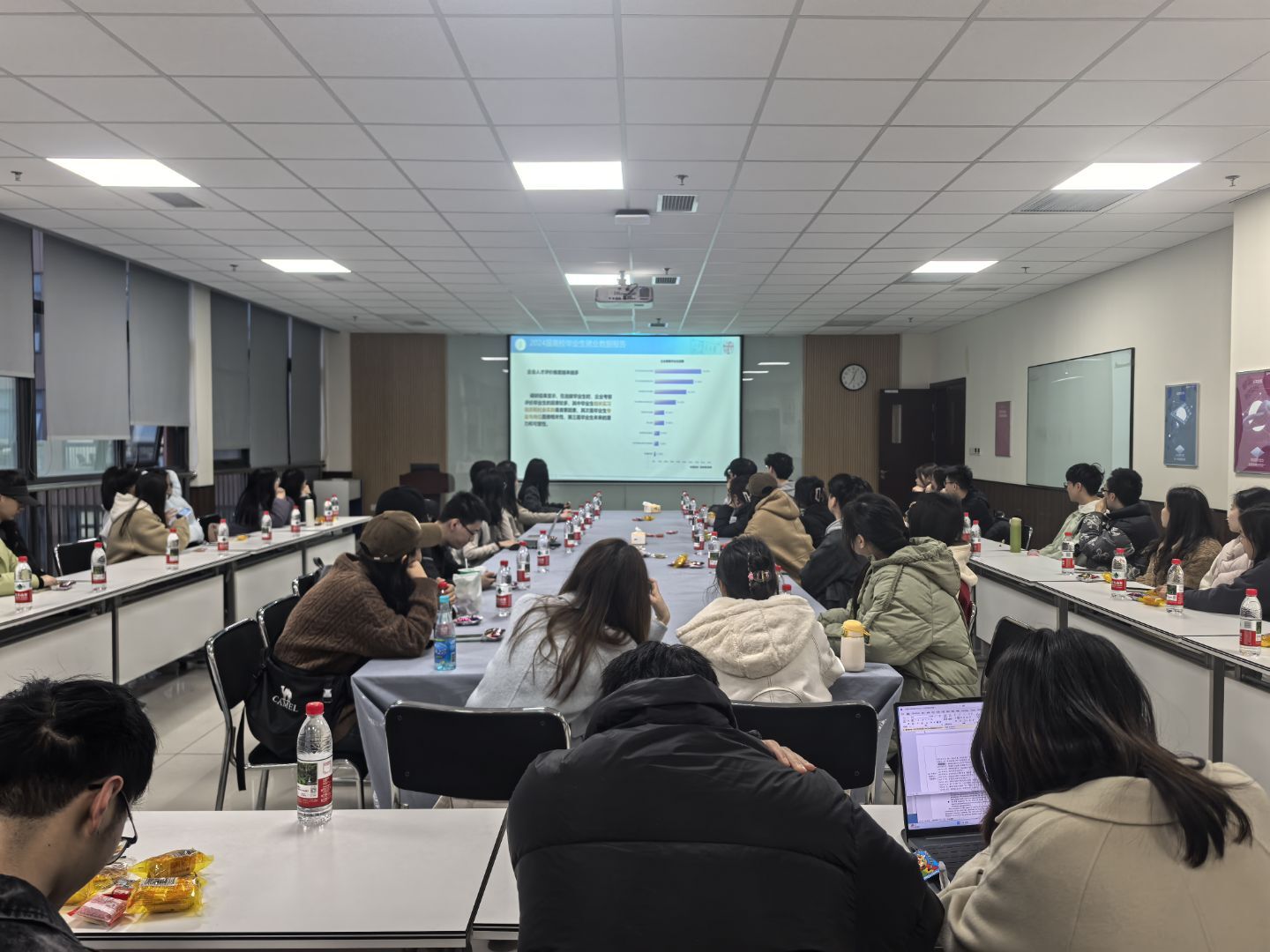 硕士毕业生就业情况等方面进行了分析,并鼓励大家充分利用交大智慧就业网,借助学校丰富的资源助力职业规划。