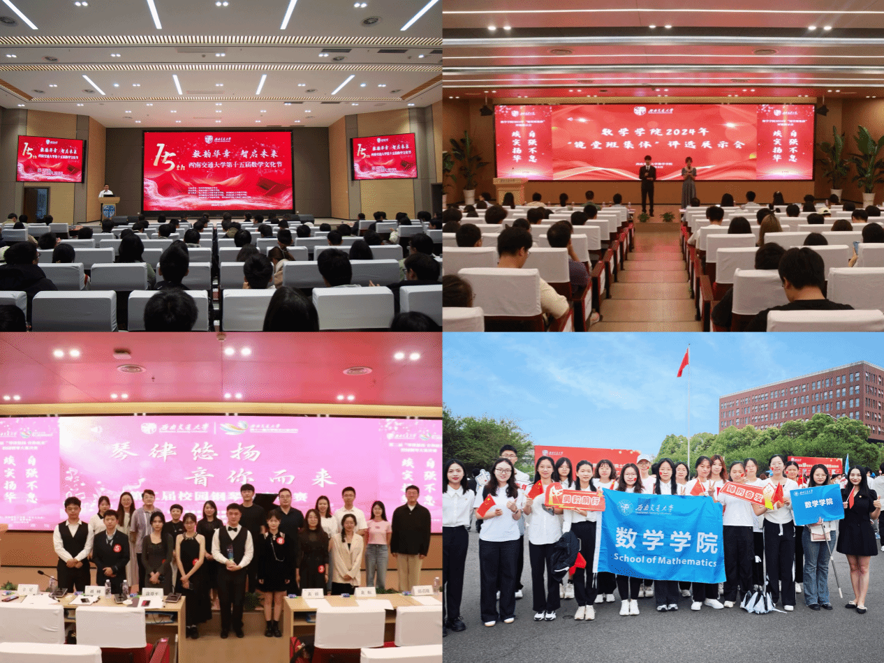 以五育并举为主线,以“思政+”、“学科+”、“交通+”为牵引,以校园文化活动为载体,在服务中长才干。数学建模协会蝉联“十佳学生社团”荣誉称号,“数学+”学科赋能本科生综合素养提升项目入选四川省“我为同学做实事”百佳项目、最受同学欢迎项目。