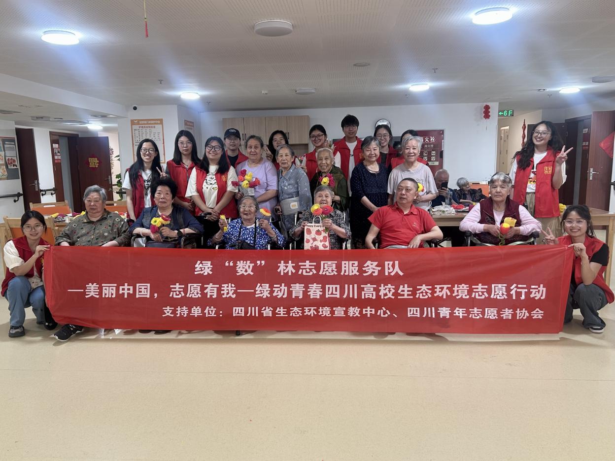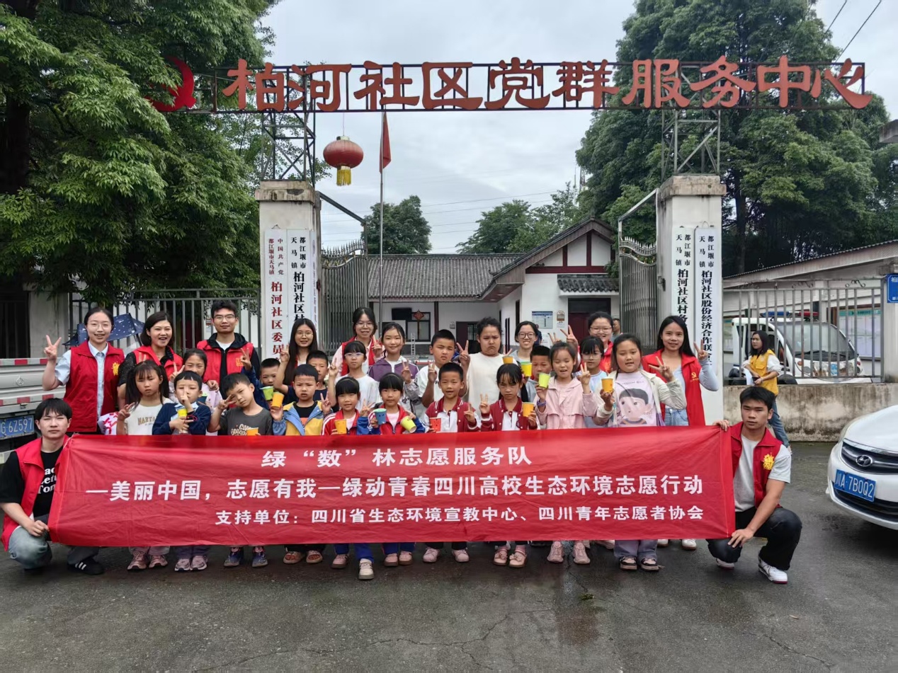 绿“数”林志愿服务队于4月至6月赴郫都区龙吟社区、金煦福万寿颐养中心、彭州市桥楼社区、都江堰市柏河社区,持续开展多期生态环境主题志愿服务活动,以学科特色为笔、以青春实践为墨,勾勒青春之亮色。