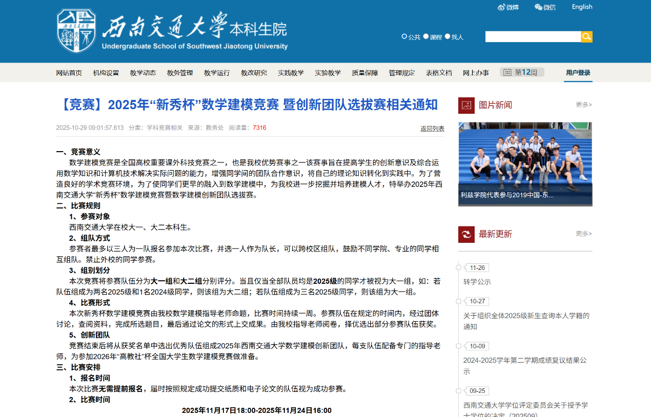 数学建模“新秀杯”暨创新团队选拔竞赛。
