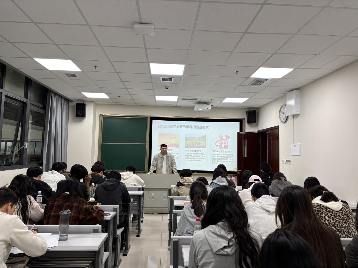 宣讲中,杨赫祎围绕《中华人民共和国宪法》《中国共产党章程》等核心内容,结合高校学生群体特点,通过理论阐释、案例分析、互动问答等形式,系统讲解了法律法规与党的纪律要求的内在联系。他重点解读了宪法中关于公民基本权利与义务的规定,深入剖析了党员发展过程中需遵守的纪律规范,强调了入党积极分子带头尊法学法守法用法的重要性。针对学生关注的校园法治热点问题,杨赫祎结合典型案例进行剖析,引导大家树立正确的法治观念,增强辨别是非的能力。