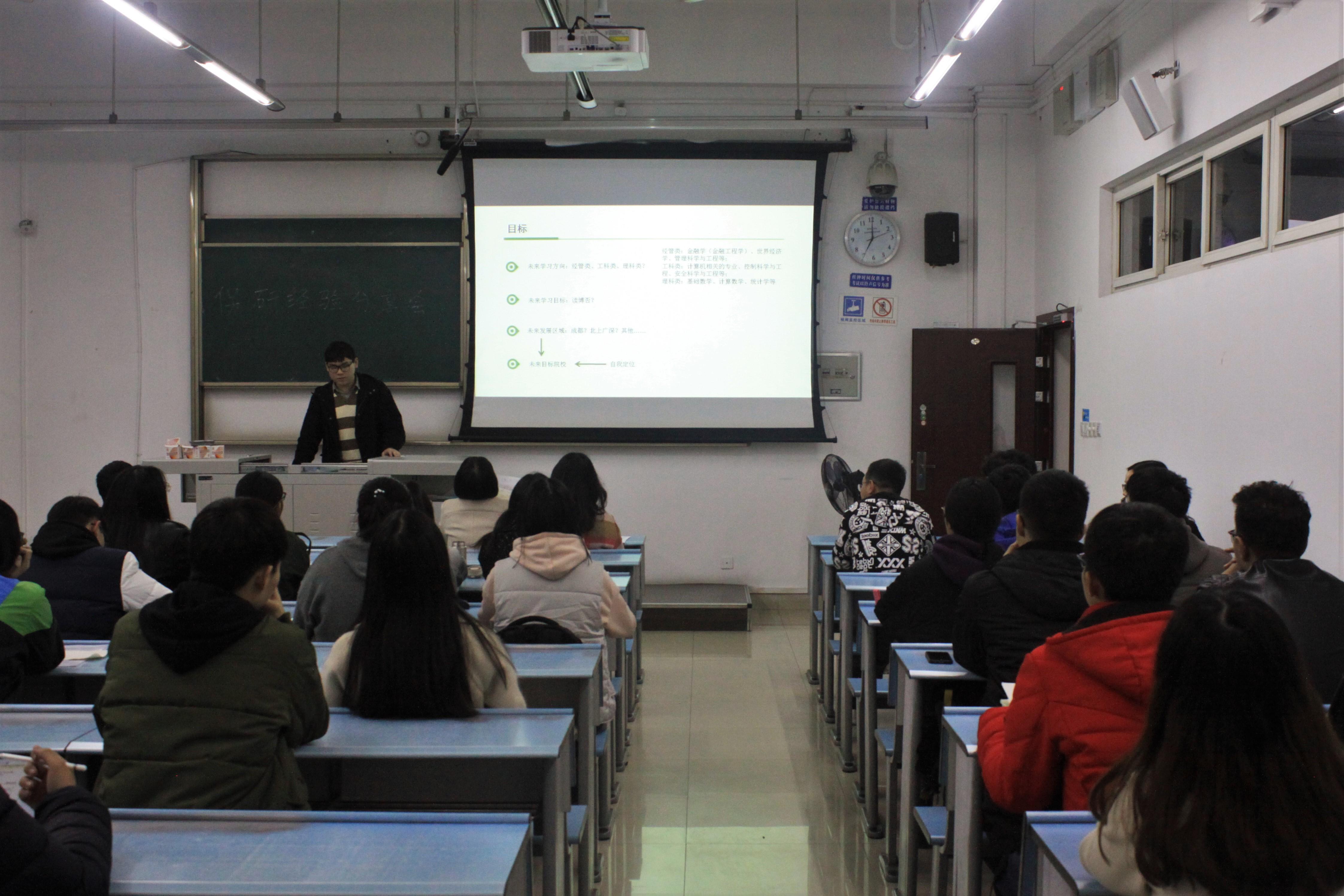 就业指导系列活动第三期——保研经验交流分享会在X2429召开。16级、18级辅导员钟义婷、15级辅导员李思佳、15级优秀保研生以及部分16级、17级学生到场参加此次保研经验交流分享会。