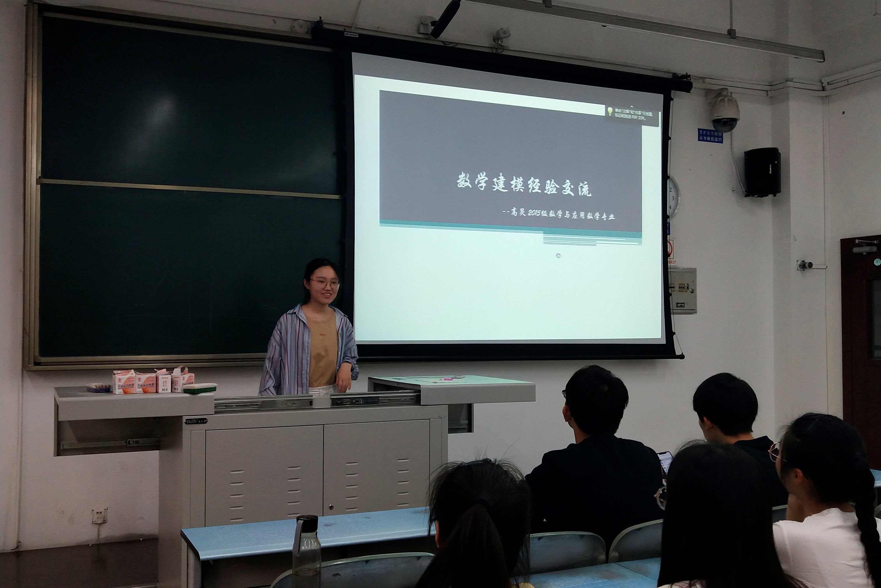 于X2223召开了朋辈说-建模经验交流分享会。本次分享会旨在帮助同学们了解建模相关事宜,为即将到来的建模赛事做准备。本次活动由16、18级辅导员钟义婷老师主持,18级部分同学参加,邀请数学学院15级高炅同学、数学建模协会的单煜、李孟钊和张嘉豪同学主讲。