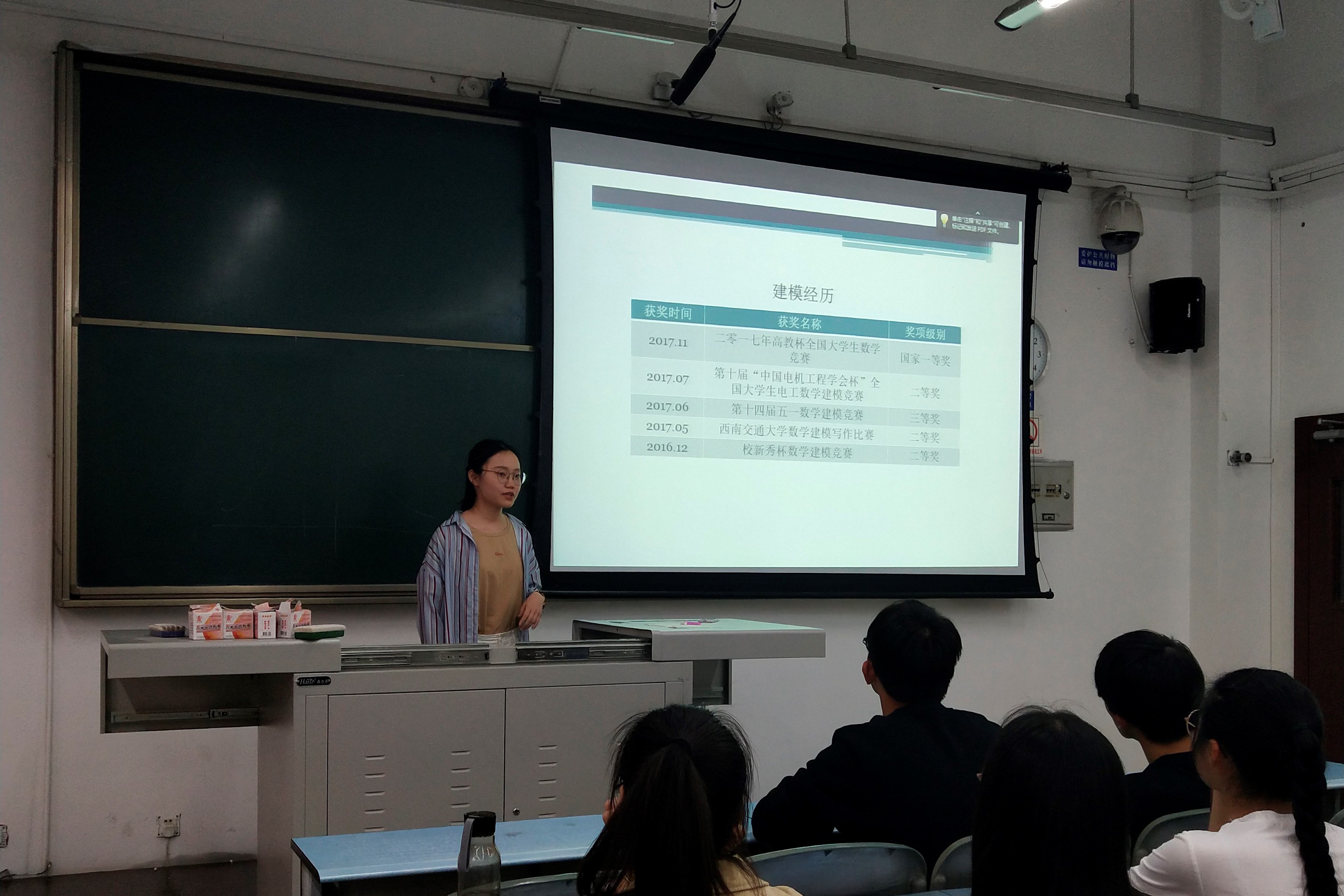 张嘉豪同学主要给大家强调了建模期间一定要诚信,不能参加有偿的关于建模比赛的讨论,并给同学们介绍了建模协会举办的建模相关讲座。
