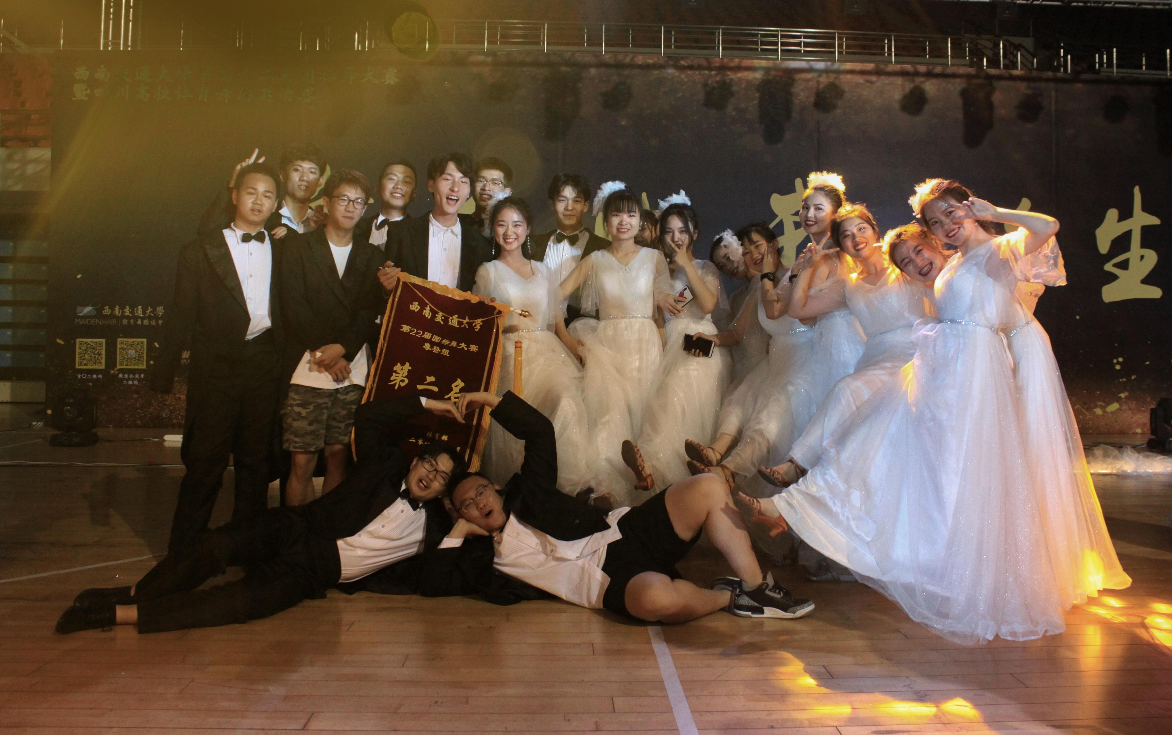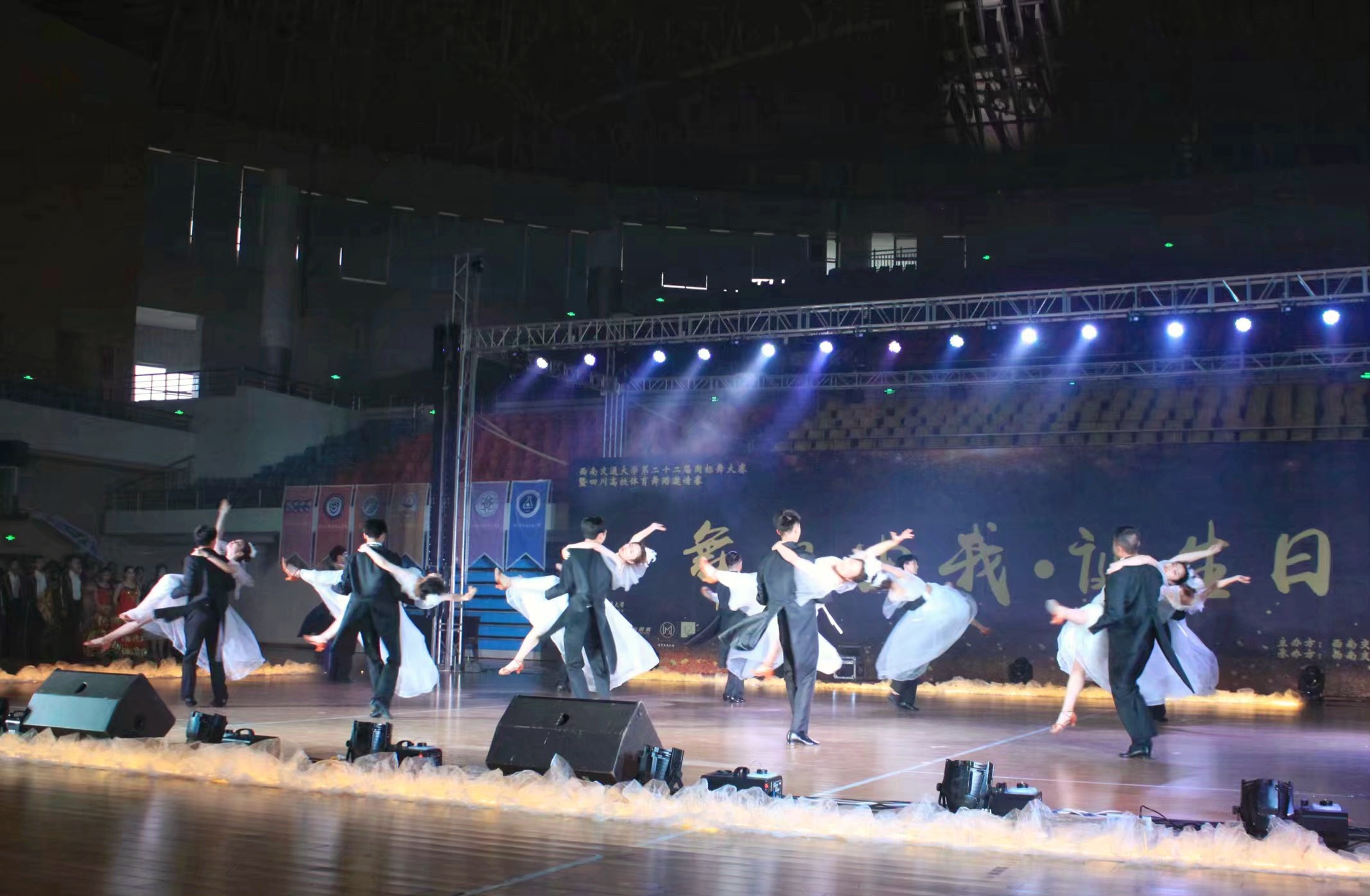 8点,拉丁组团体赛开始。经济管理学院、物理科学与技术学院、生命科学与工程学院、建筑与设计学院、人文学院、地球科学与环境工程学院、机械与工程学院、交通运输与物流学院依次登台表演。