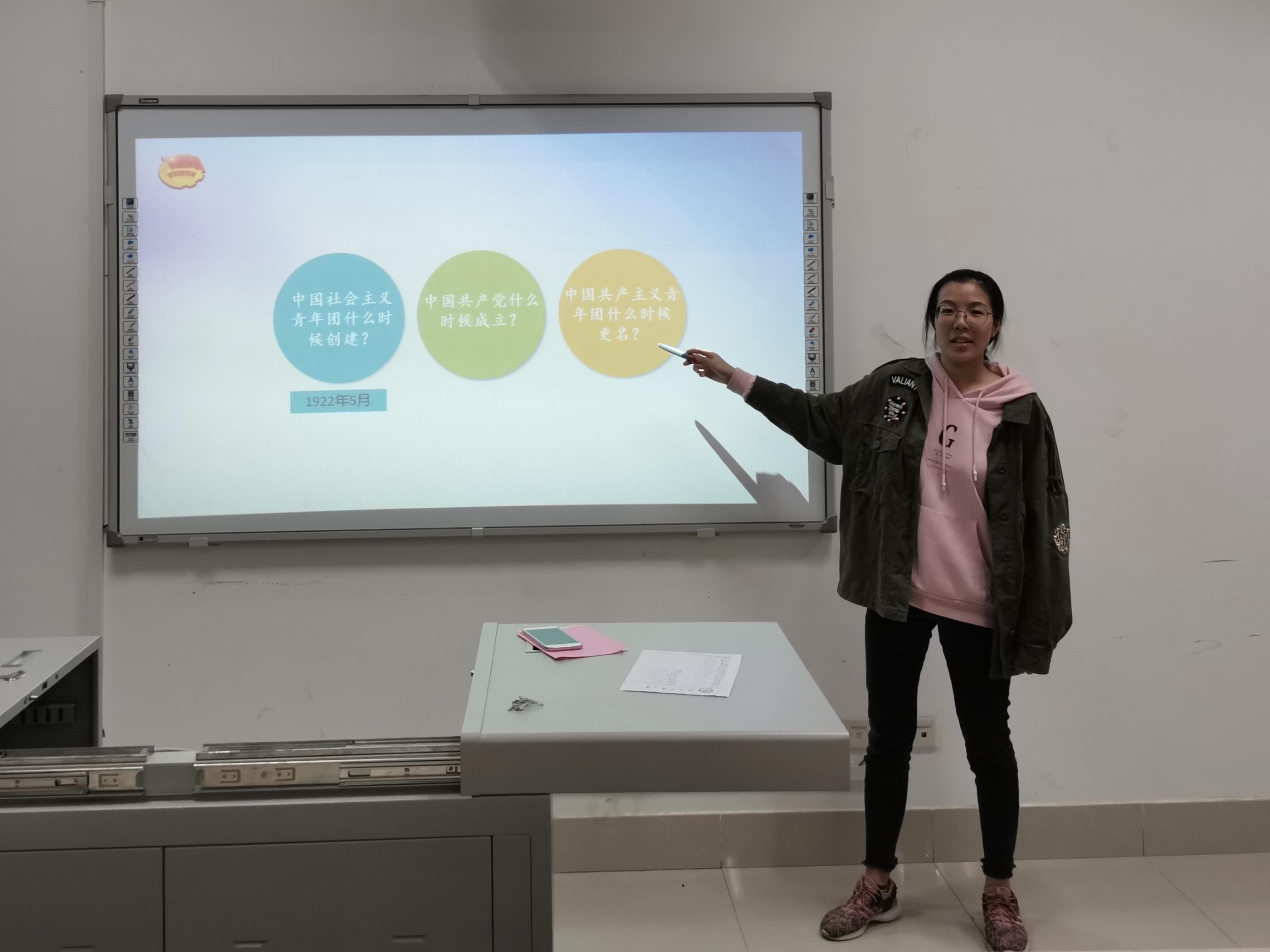 朗读结束后,在王滋同学一丝不苟的讲解下,我们了解了许多有关中国共青团的知识。我们了解到共青团在革命时期和当今背景下所具有的不同的职能,深刻意识到我们共青团员是中国共产党的助手和后备军。