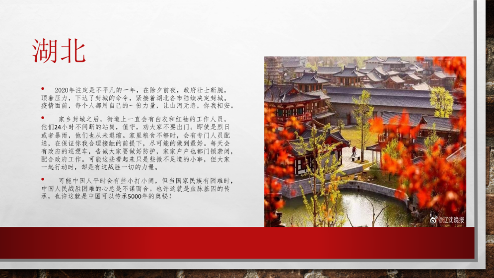 2020年初,中国湖北武汉突然爆发了疫情,其潜伏期长,无明显症状等特点令其防不胜防,同时还赶上了中国一年中最大的人口流动时期----春运。狡猾的病毒加上超大规模的人口流动,控制难度可想而知。但这是在中国,在面对一切困难绝不放弃的中国。武汉疫情严重?封城!人口流动大?交通停运!当然还有你们---白衣天使,争先恐后地报名前去武汉,成为了新时代的最美逆行者。