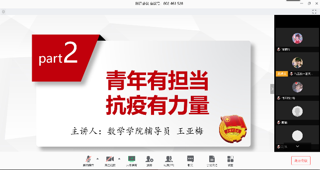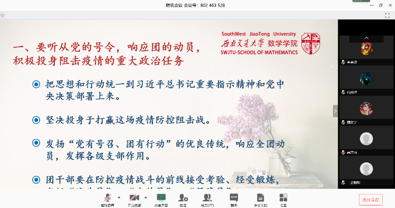 数学与应用数学2019级1班团支部全体团员在团支书冯玉的带领下,参加了以“聚力青春跟团走,抗疫战线勇担当”为主题的2020年春季线上第一堂团课。网飞猫
