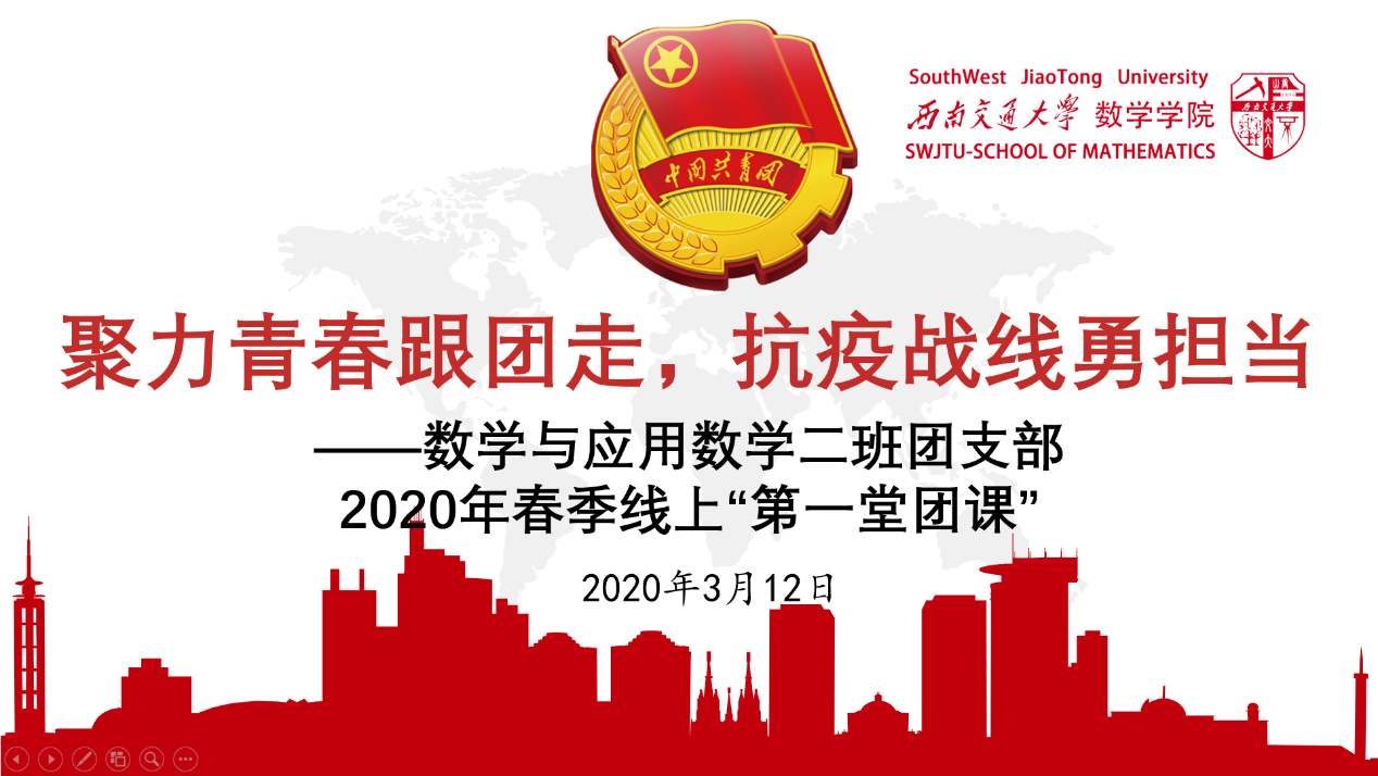 应用数学2019级2班团支部2020年春季第一堂团课以视频会议的形式,于3月12日14:30如期开展。团课以“聚力青春跟团走,抗疫战线勇担当”为主题,号召支部团员坚决为打赢防疫阻击战而奋斗。团课由团支书张涵兹主持,支部23名团员按时参加,认真学习。网飞猫