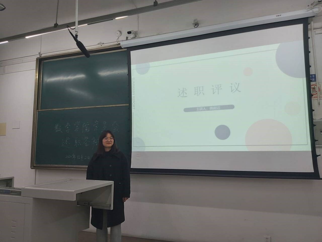 学生会述职评议大会在 x2436顺利举行。本次参与述职评议大会的评议员有邓思然老师、周睿老师、张素子老师、王亚梅老师,学生会主席团以及个部门负责人出席会议,共有21个人参与评议。
