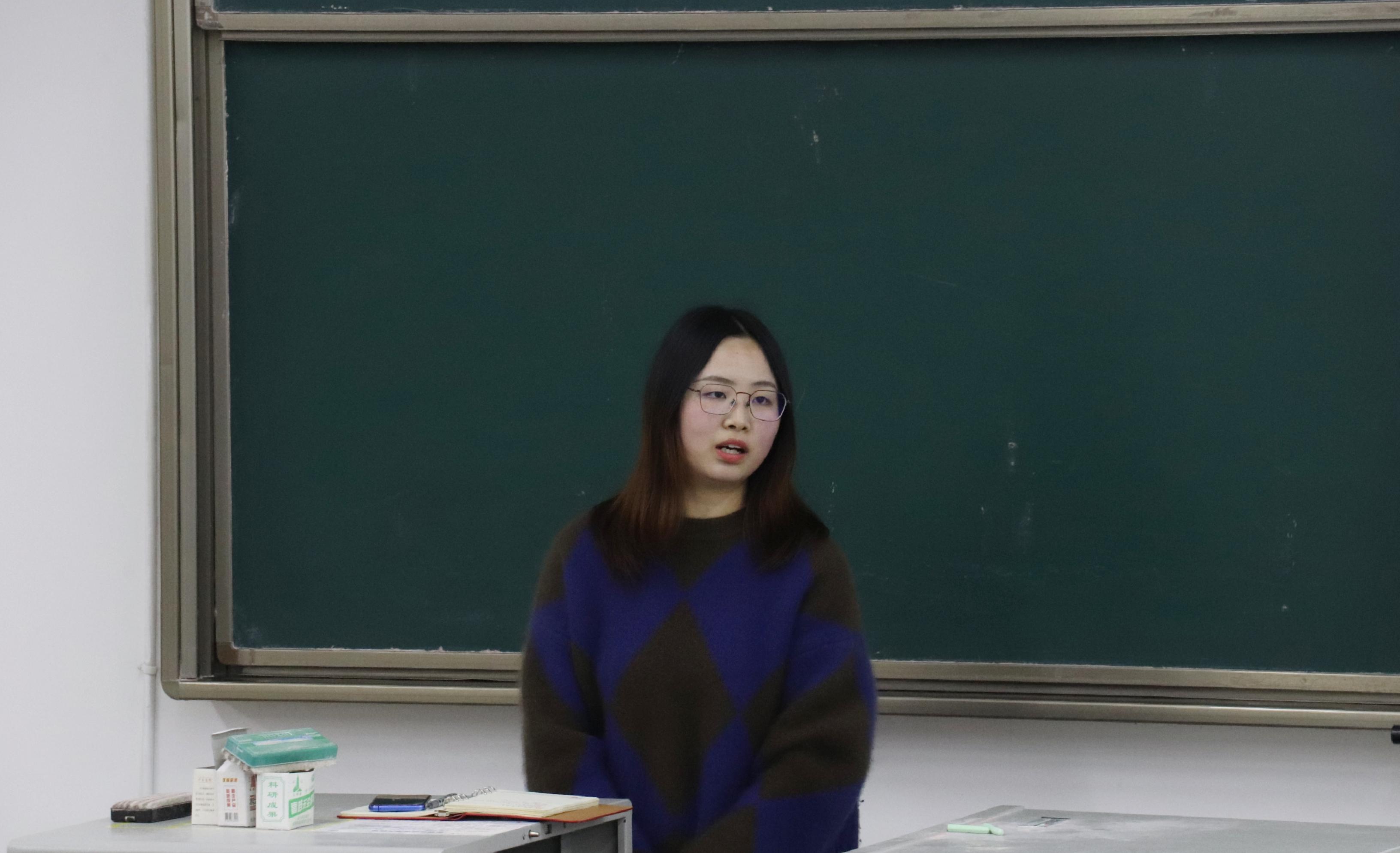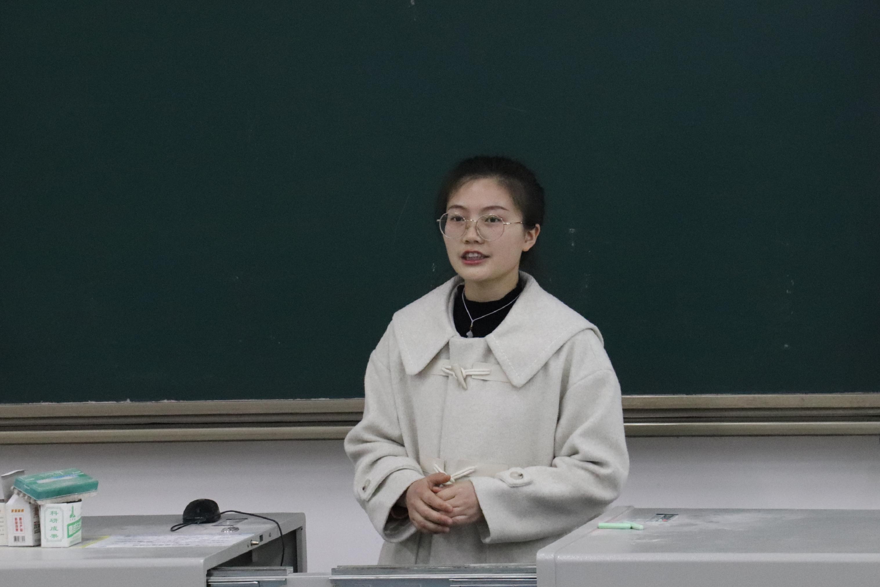 首先上台的是赵宜婵同学,她为同学们带来生物统计方向的介绍。她分别阐述了生物统计的主要内容和研究方向,如生存分析、纵向数据分析、临床试验设计、统计遗传学等,并讲解了所用软件、学习R语言的推荐书目等。最后指出,生物统计的就业前景十分广阔,毕业生可以进入公司、医院或科研机构等。