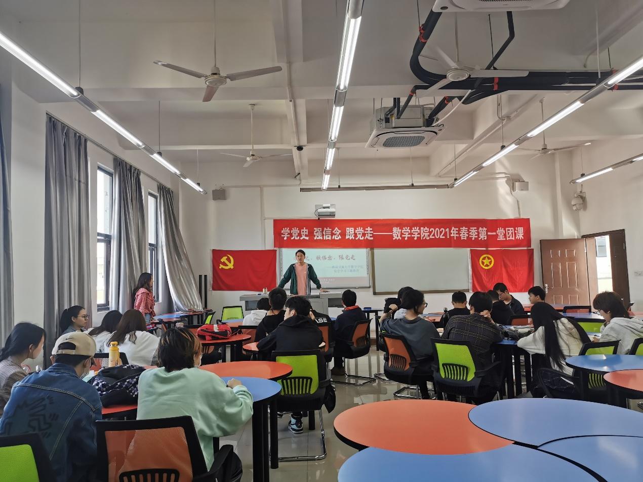 应用数学2019级2班团支部于4月29日09:50在X9503开展了“开学第一堂团课”。本次团课由张素子老师主持,支部25名团员按时参加。