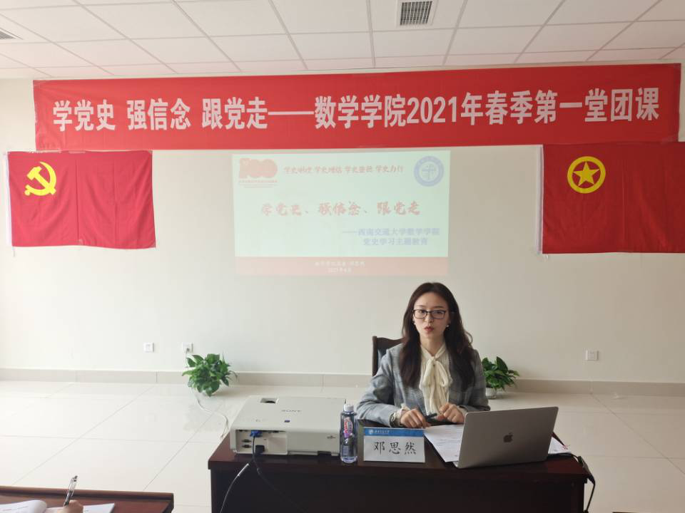 邓思然同志从问题着手,以“我们为什么要学习党史?”作为首堂团课课程导入。她强调党的历史是最生动、最具说服力的教科书,开展党史学习是推进中华民族伟大复兴、推进党的自我革命、在新时代坚持和发展中国特色社会主义的必然要求。同时她带领同学们回顾了中国共产党成立100年来的革命岁月,并号召广大团员青年学史明理、学史增信、学史崇德、学史力行,切实做到“知史爱党,知史爱国”,扎实学好专业课程,思源奋进,让红色基因、革命薪火代代相传。