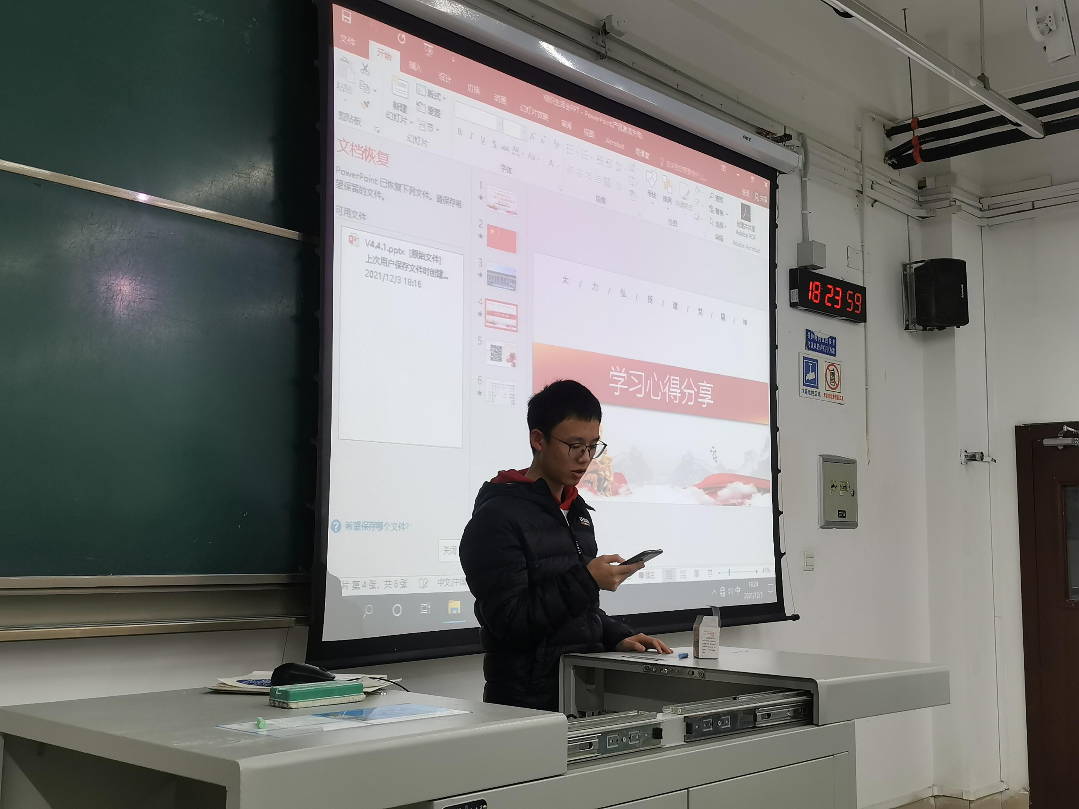 在观看视频后,进行了学习心得分享,结合会前学习,同学们从多个角度分享了自己对于十九届六中全会精神的感想领悟。与会同学认真聆听,积极思考,做好记录。