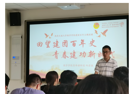 “青年讲师团”成员本科2021级辅导员邱君捷老师进行宣讲。本次团课主题为“回望建团百年史,青春建功新时代”,支部成员应到26人,实到24人,另有三名青年学生参与,支部成员参与团课积极性较高,展现了团支部的青春活力与爱国爱党热情。