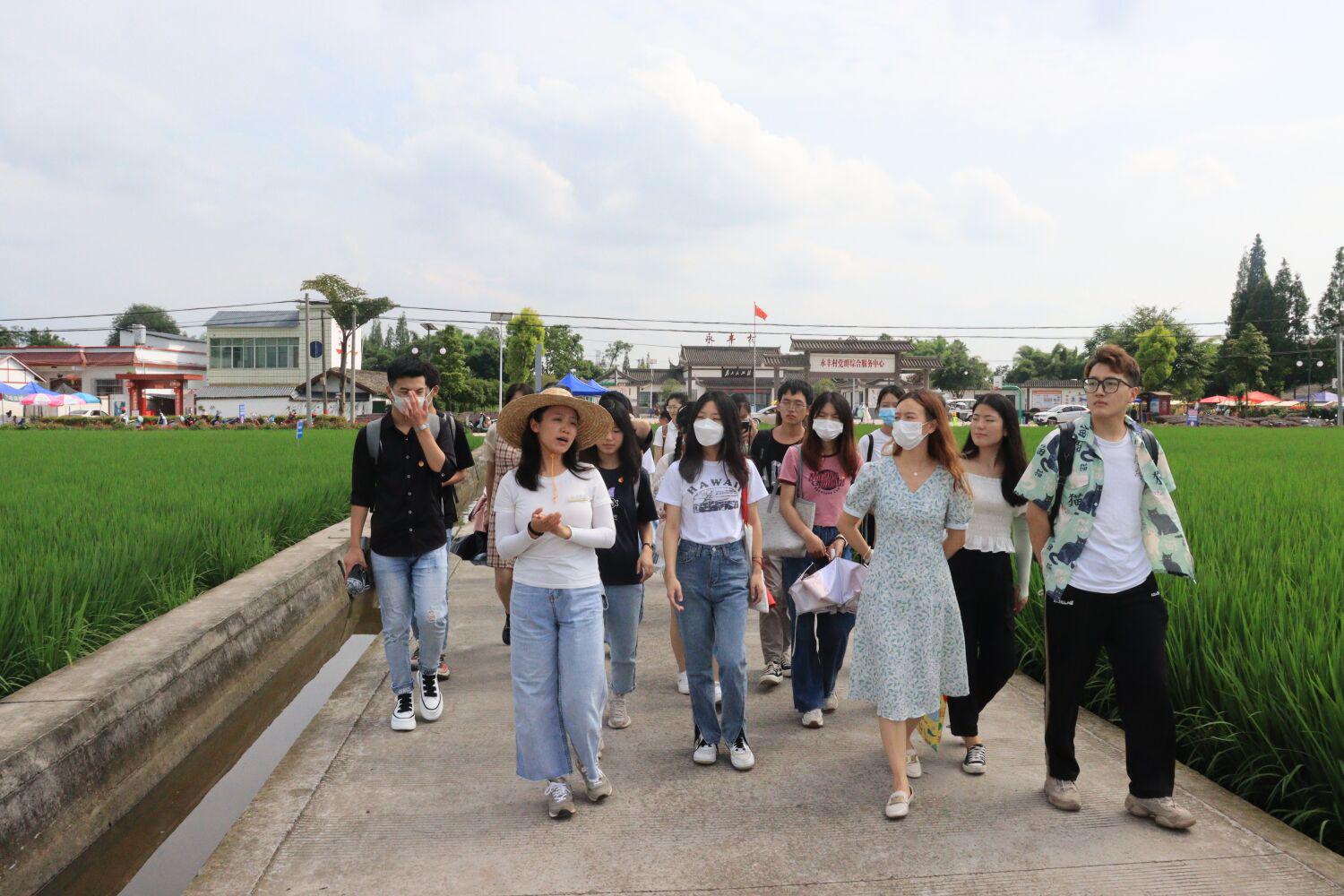 在太和镇永丰村,同学们在村委会工作人员的讲解下,走进稻田,近距离感受高标准农田建设情况,学习习近平总书记“中国人要把饭碗牢牢端在自己手里”的重要指示,亲身感受“绿水青山就是金山银山”的绿色发展理念。“永丰永丰,永远丰收“,端稳”饭碗“,守牢底线,保障粮食安全,永丰村的成功案例增强了同学们对于全面推进乡村振兴,助力”天府粮仓“建设的使命感、责任感。