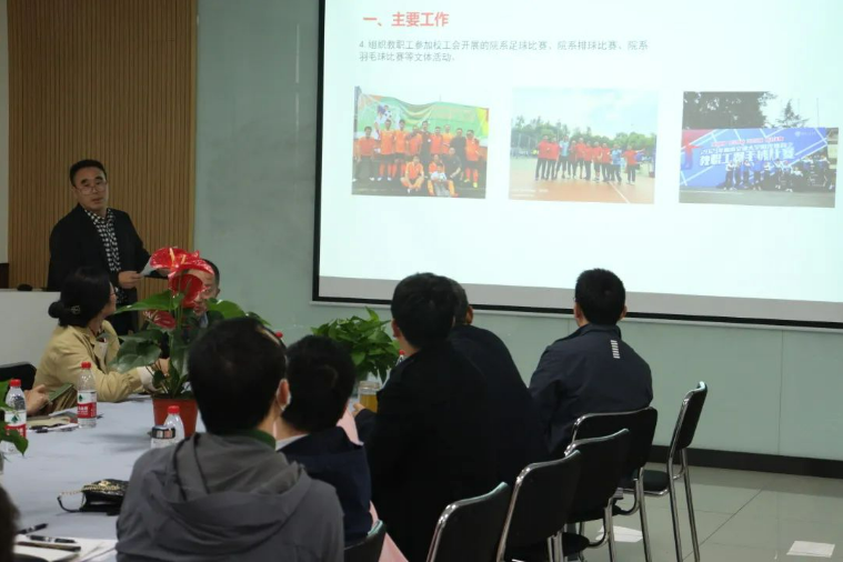 工会主席秦应兵在大会上汇报了2022年工会工作的主要工作成绩,在2022年中我院积极发挥工会作用,如发放教职工慰问品、困难补助工作等。秦主席表示将继续推进实施工会关爱教职工"九必访"制度,完成教职工之家建设,组织更多文体活动。
