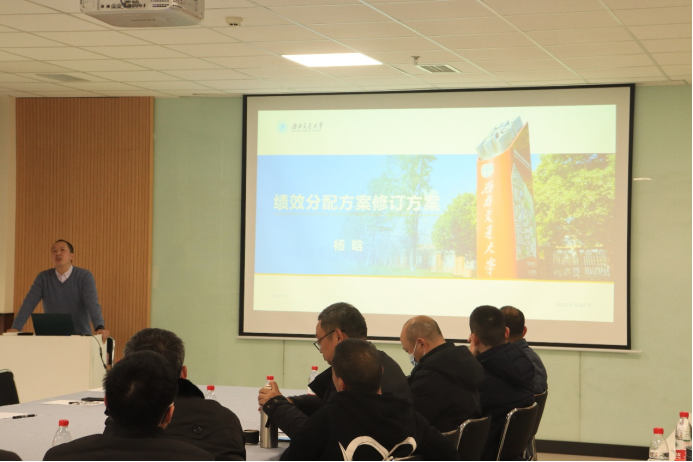 绩效工资实施方案(岗位绩效考核与分配办法)(2024年修订版)》的审议。杨院长对绩效分配方案修订方案进行说明,就绩效修订进行了背景介绍并解读了绩效的结构,对方案修订、基础绩效发放标准、教学科研相互折扣标准和科研论文工作量计算进行说明。