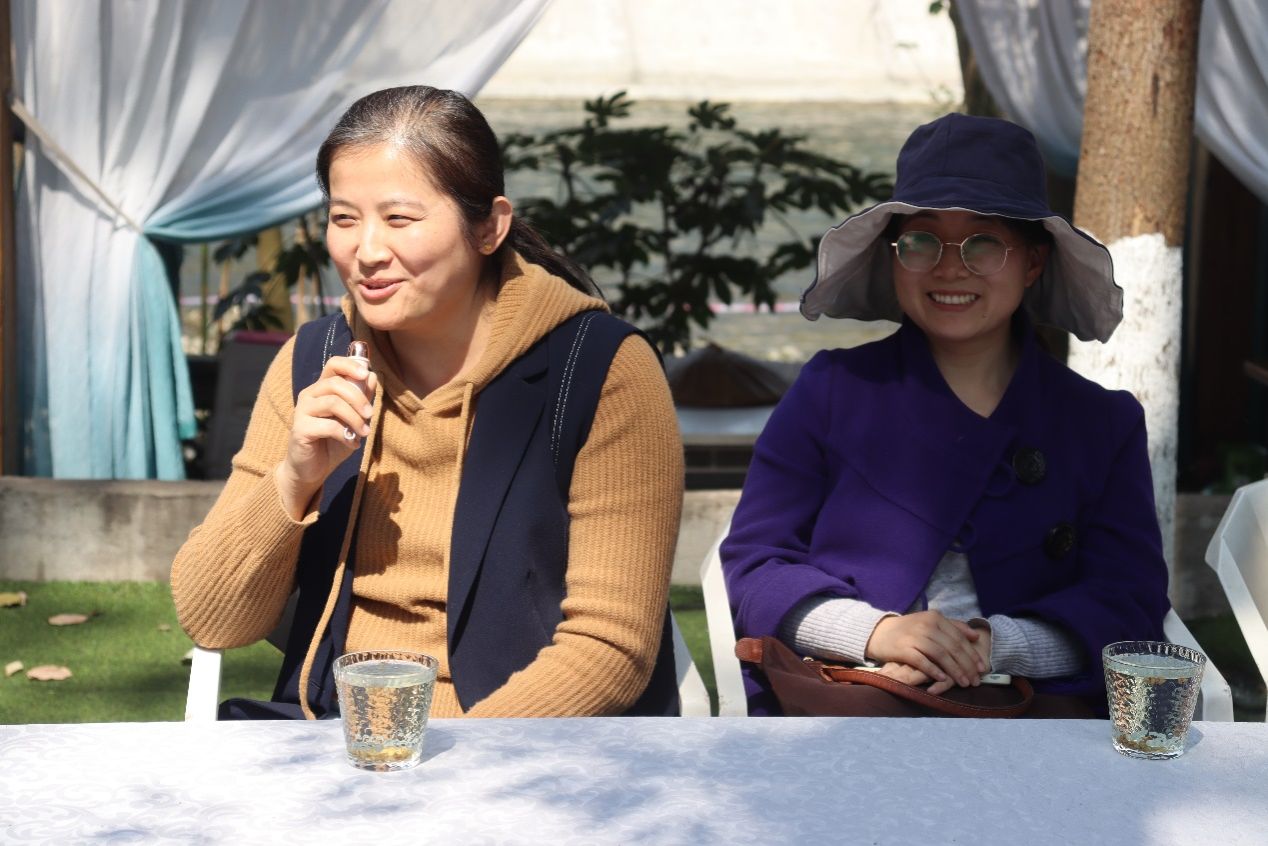 故事会结束后,老师们在编织手工、赏花踏青、交谈品茗中共度了下午的闲暇时光。