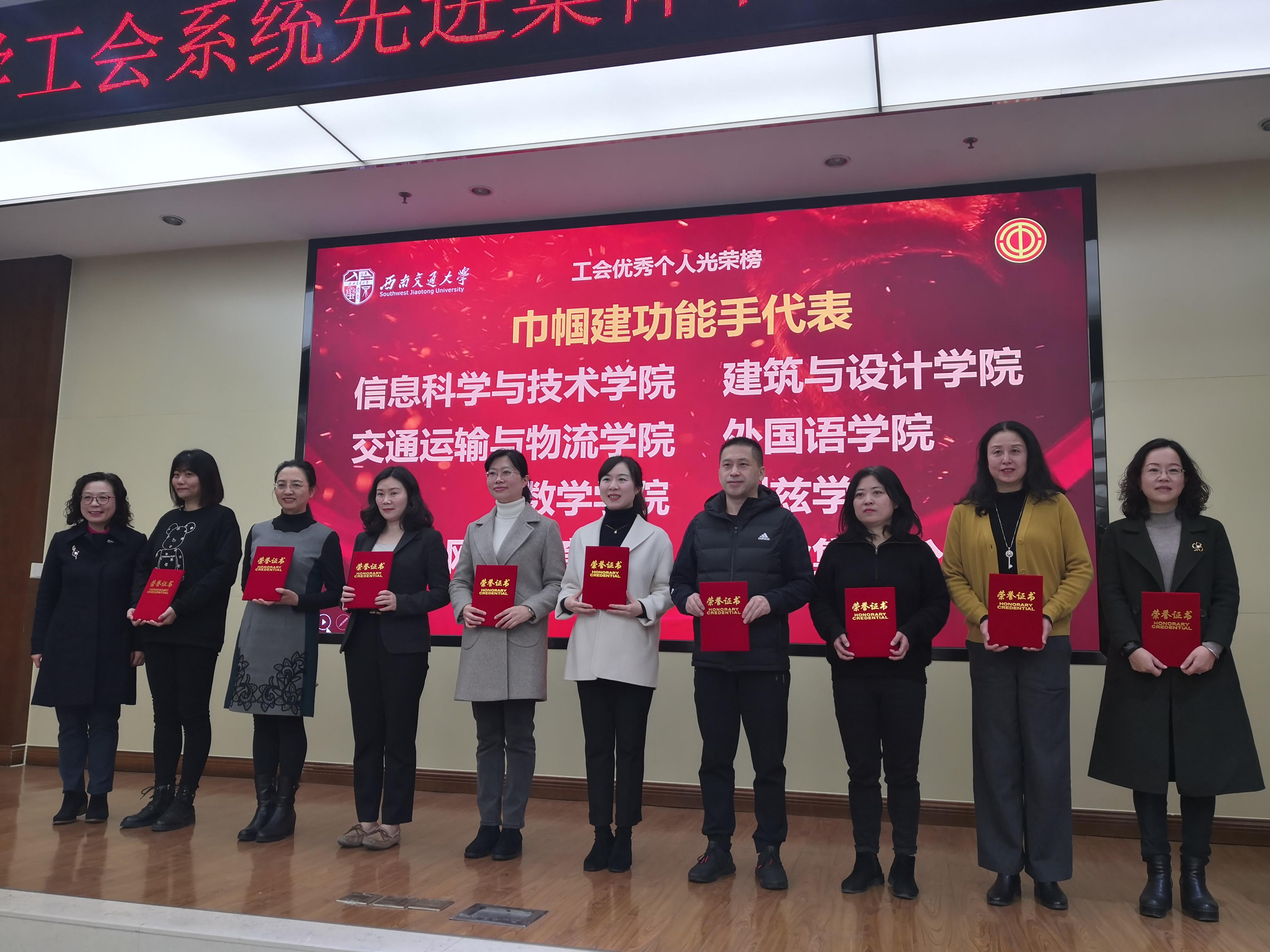 中公共数学课程思政示范教学团队荣获“巾帼文明岗”,阳锐顺、郝虹、徐革荣获“工会优秀工作者”,杨晗荣获“优秀工会之友”,邓绍高、韩帮胜荣获“优秀工会积极分子”,冯颖荣获“巾帼建功能手”。