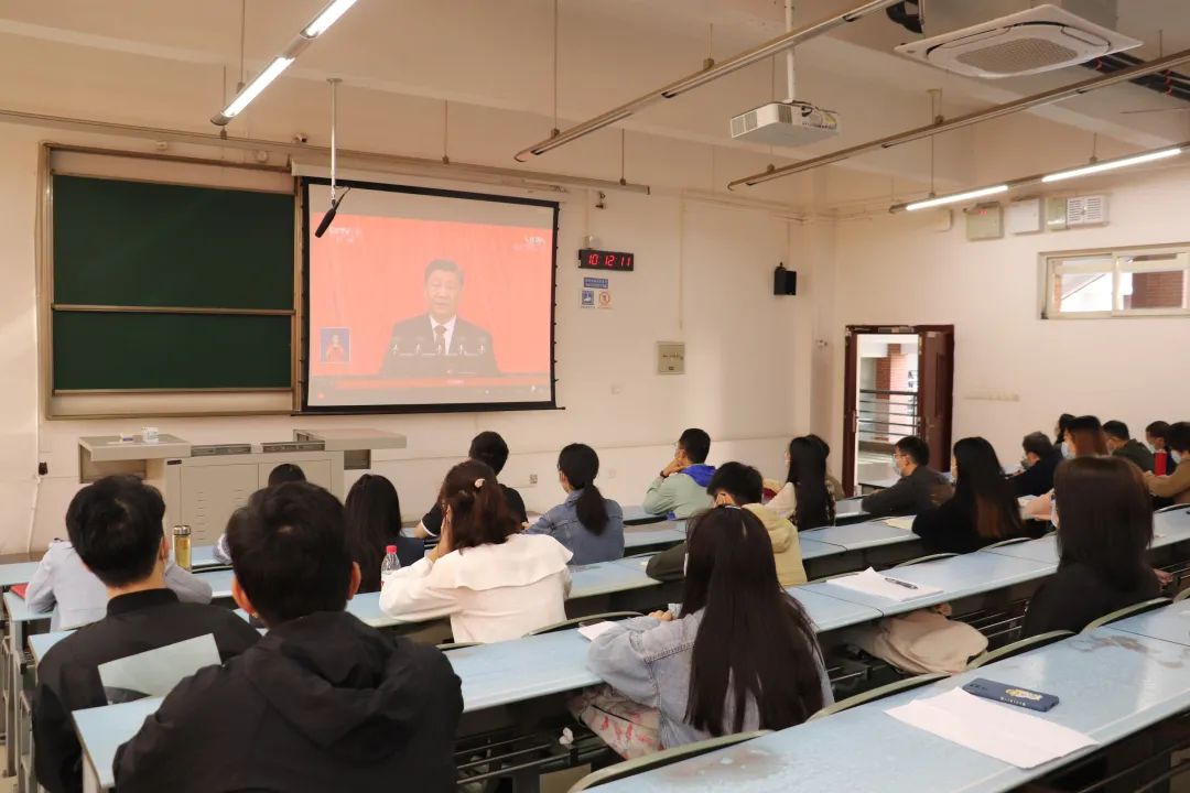 党委书记徐革,执行院长杨晗,副院长潘小东、王璐、李志辉,党委副书记黄祥,院长助理黎定仕、杨洋,党委委员刘品,党委专职组织员徐海晶,综合事务办公室主任任鹏,辅导员代表,离退休党员代表及各团学组织学生骨干前往X30456主会场现场观看二十大开幕会直播。学院全体教职工党员、学生党员、预备党员及入党积极分子在X2215、X2216、J4609A分会场观看现场直播。