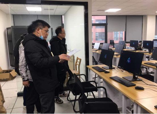 检查组对相关实验室进行了全面检查,重点对实验室的设备布局、安全消防设施的摆放、室内线路安全承载、门窗防盗功能、规章制度的上墙、值日打卡记录等进行了专项检查。恰逢此次贴息贷款项目的部分更新设备安装、调试、验收等环节,李志辉副院长连同校内外三名专家结合招标文件、购置合同等文件开展实地验收,逐项核对设备数量、规格型号、性能参数等,进行现场测试,做到事无巨细,严谨规范。通过检查,实验室设备数量及性能参数符合招标合同、安装摆放规范、场地干净整洁;实验室管理和安全制度健全,值日打卡记录清晰,安全责任到人,实验室运行状况良好。鉴于数学实验实践中心位于五教,与学院主要实验室较为分散,加之实验室门锁年久失修,存在一定安全隐患,学院在召开的2023年第二次党政联席会一致同意进行线路改造以及门锁的更换,大大提升了实验中心的安全保障硬件条件。李院长强调,学院要不定期开展实验室安全检查工作,层层踩实,将责任落实到人,务必仔细排查安全隐患并切实做好实验室安全隐患整改工作,确保全院师生人身安全,保障新学期实验教学工作的正常秩序。