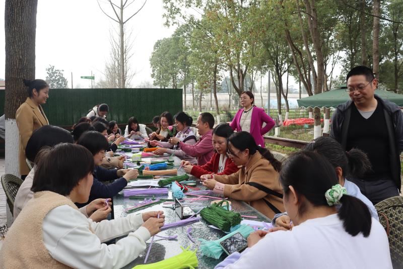 的老师们陆续出发,驱车前往位于郫都区的洪湖家庭农场。女老师们聚在一起亲手制作手工花束,并相互送出节日的祝福。集体活动结束后,老师们在赏花、品茗中度过下午的闲暇时光。