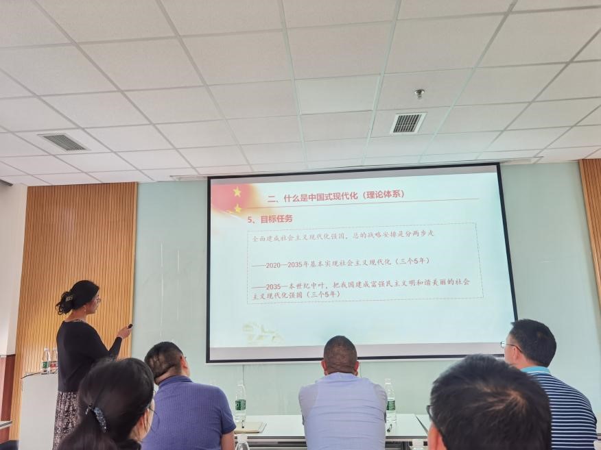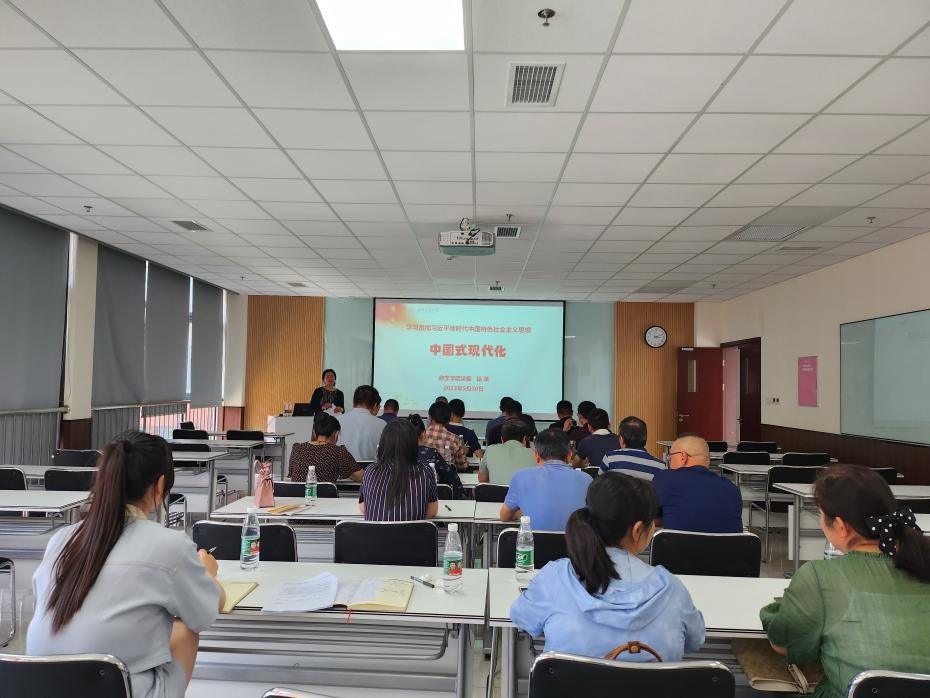 党委书记徐革以《中国式现代化》为题讲主题教育专题党课。学院党委委员、中层领导、辅导员、师生党支部委员参加专题党课学习。