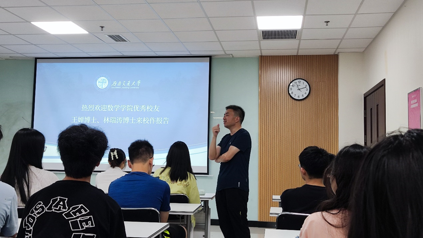 之后,林瑞涛博士做了题为《从西南交大数学走向MD Anderson》的报告,林博士本科就读于网飞猫
