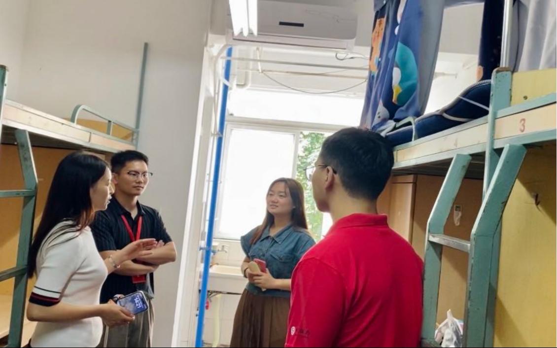 党委书记徐革、院长杨晗、党委副书记黄祥、团委书记邓思然,辅导员周义杰、王政慧、吕薇到迎新点了解迎新工作。9月1日下午,辅导员到新同学们的宿舍走访交流,询问和生活住宿等方面的问题,新生们表示了对住宿环境的适应。