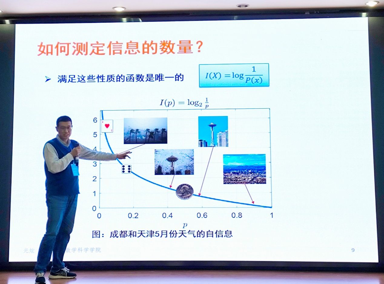 随后,光炫教授以“简述信息论”为题做了开场学术报告,他从探索是否应该通过反复试错方法,引出了构建理论的重要性,并深入浅出从信息论的思想、发展背景、基础数学理论、应用领域介绍了信息论。报告不仅展示了信息论在解决实际问题中的重要性,也激发了研究生们对理论研究的热情。