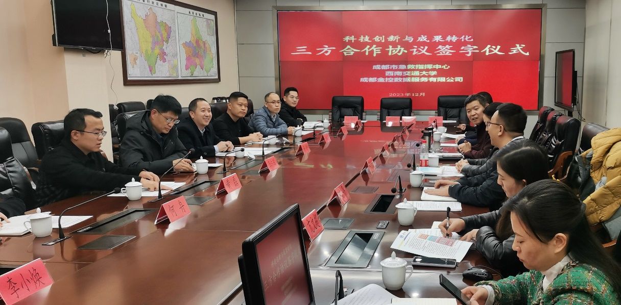 院长兼国地实验室主任杨晗、副院长兼国地实验室副主任李志辉、国地实验室副主任兼四川省学生体质健康大数据研究与联合应用技术中心主任韦洪雷、信息与计算科学系主任孟华、数学中心副主任黄磊,以及国地实验室教师何舟、李小焕、博士生李浩然等一行八人赴成都市急救指挥中心与成都市急救指挥中心、成都金控数据服务有限公司签署了三方合作协议。成都市急救指挥中心主任马林、副主任高艳明、科长陈静等10余名负责同志出席。成都金控数据服务有限公司副总经理邓熙莹、副总经理叶丹等人出席。